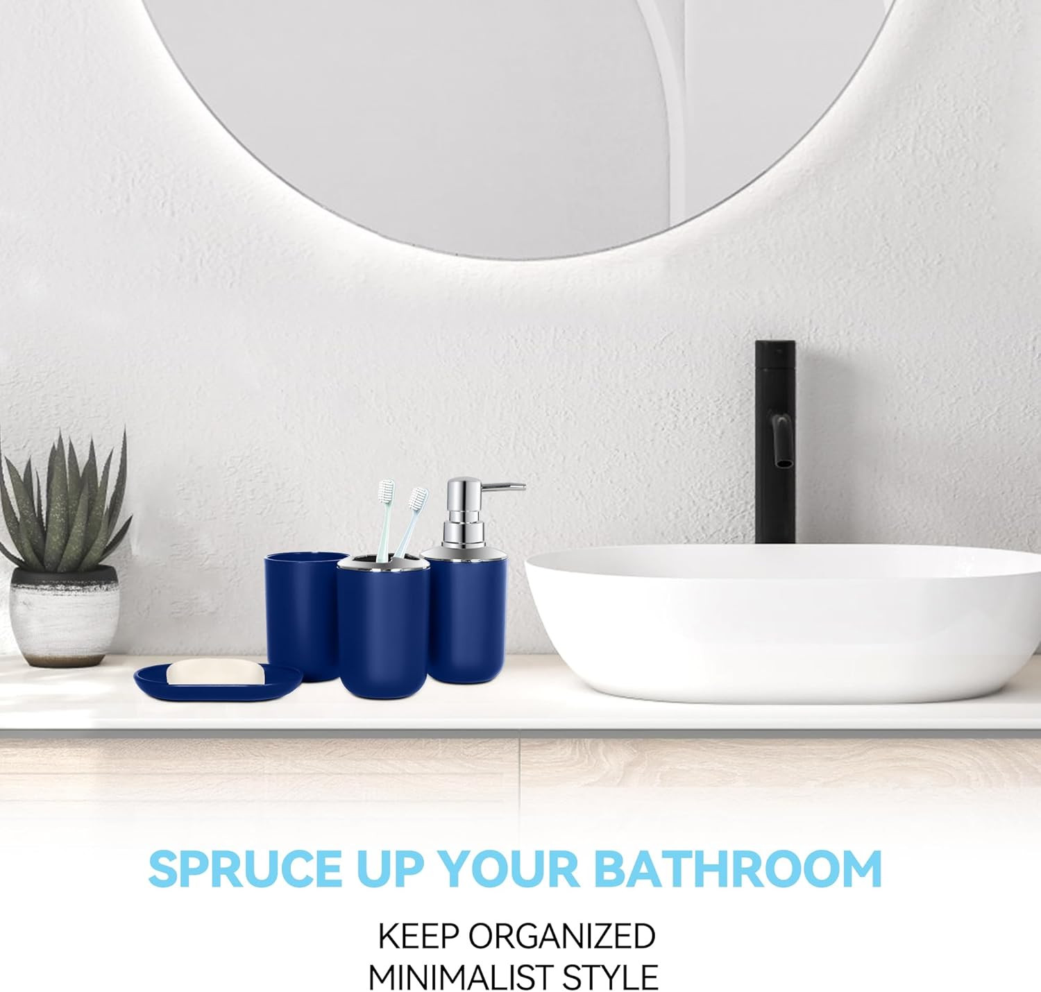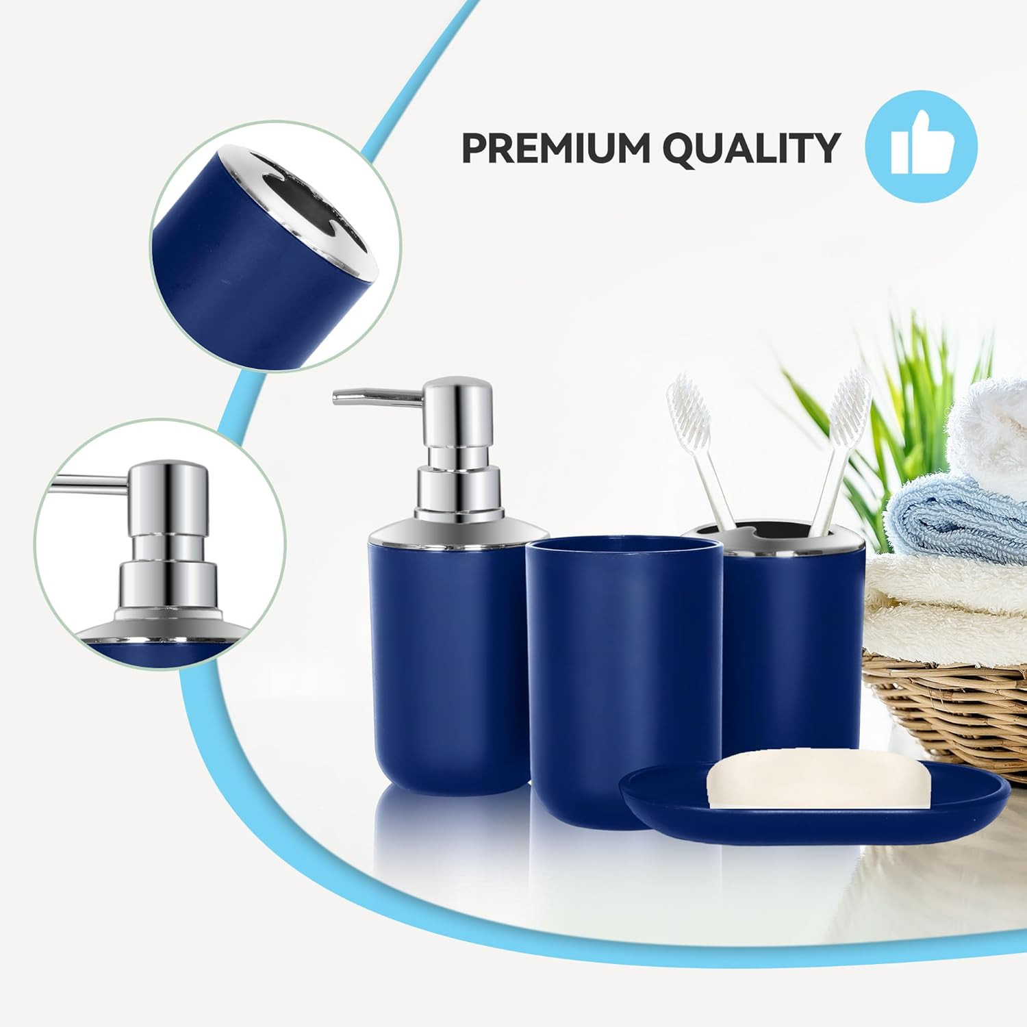 Blue Bathroom Accessories Set 4 PCS, Blue Bathroom Accessories, Plastic Soap Dis