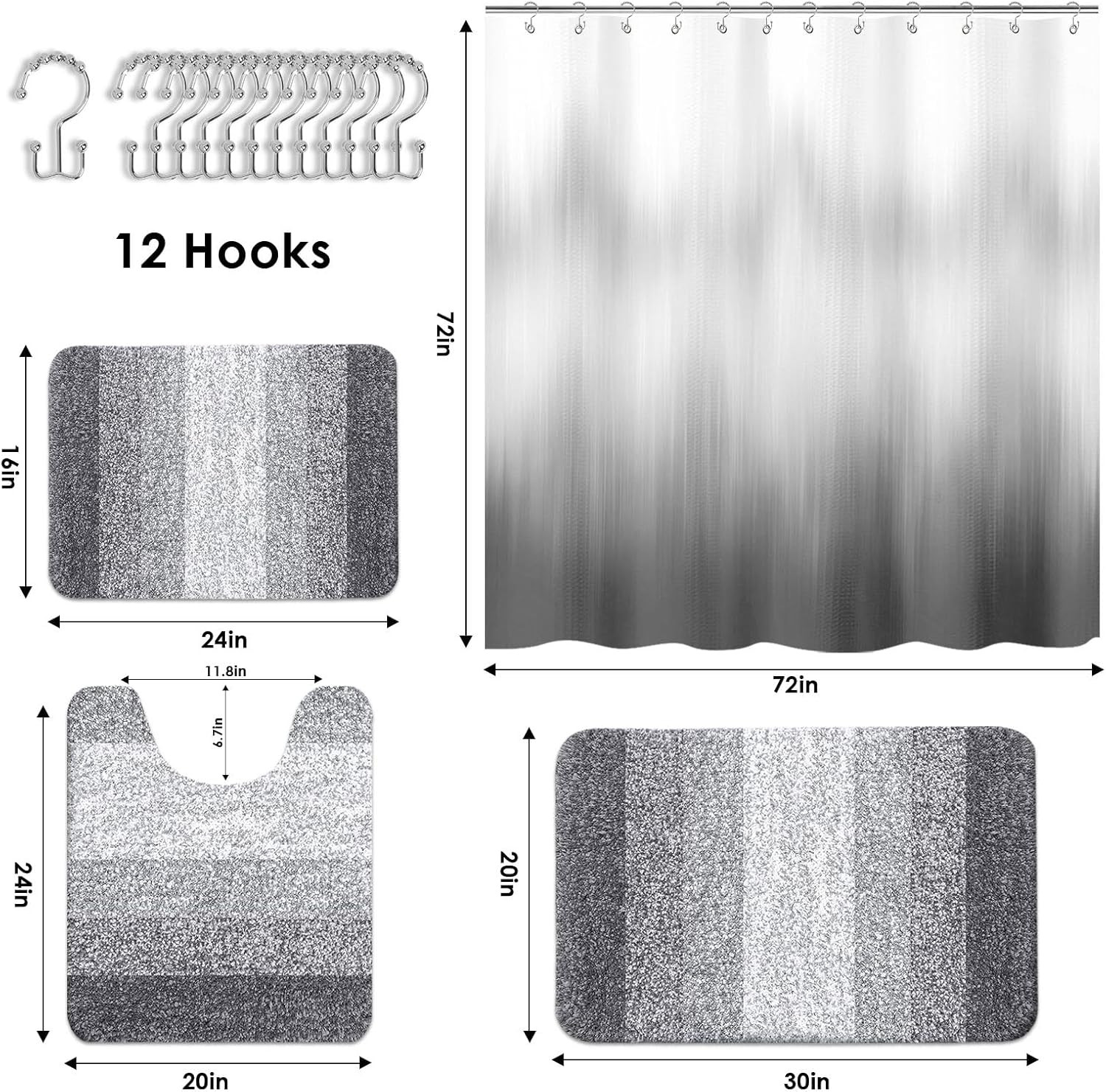 Included Components: Bathroom Accessories, Bathroom Rugs, Shower Curtain