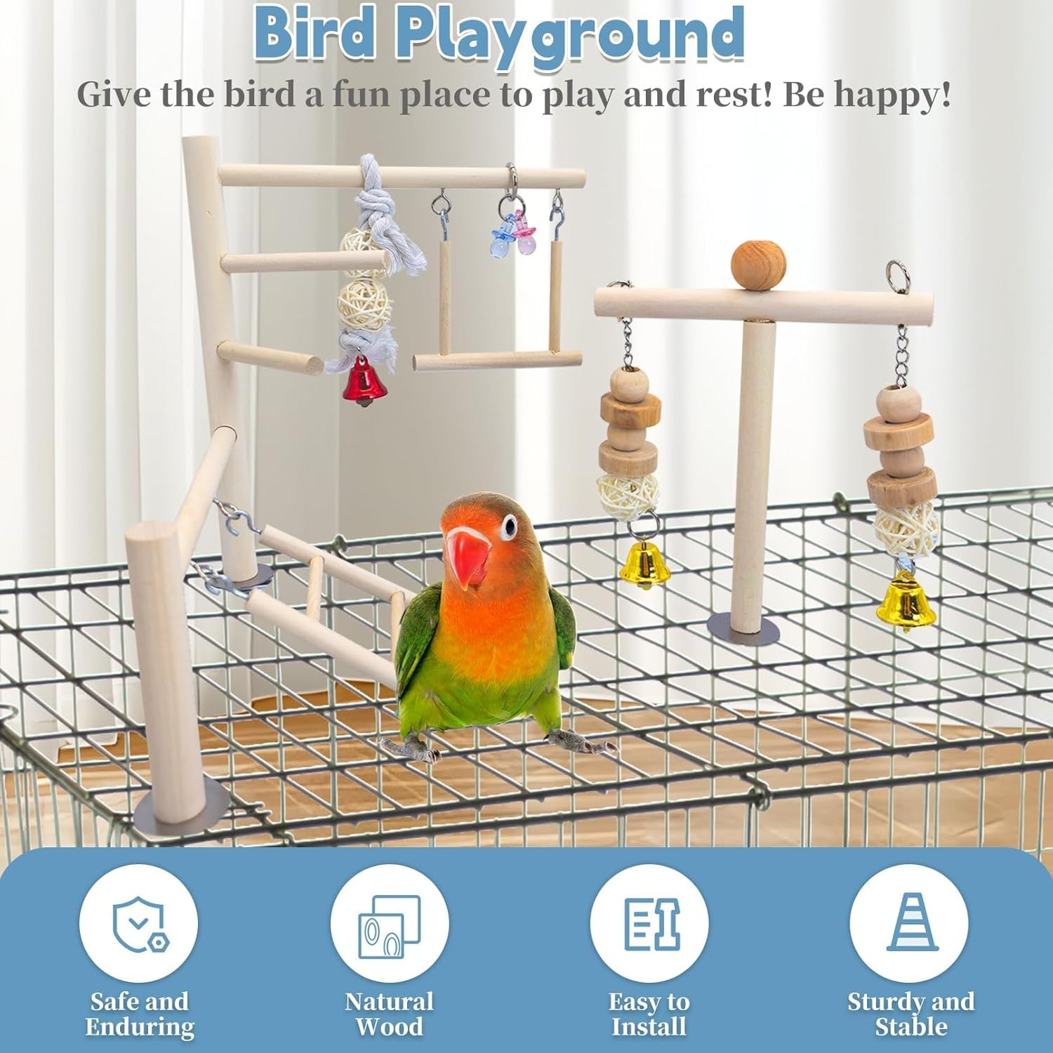 Bird Playground Parrot Play Gym Parakeet Cage Play Stand Wooden Perches Playpen
