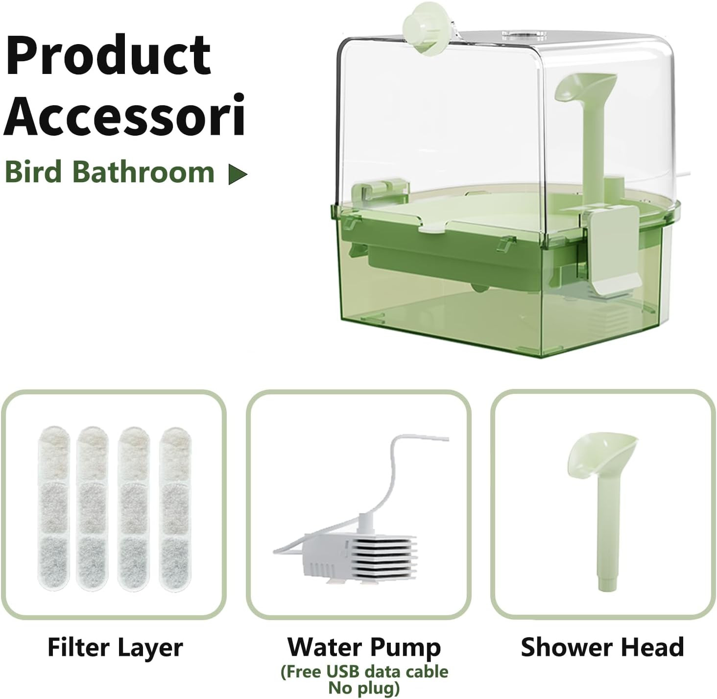 Automatic Bird Baths for Cage Indoor Parakeet Bath with Pump, Bird Shower with