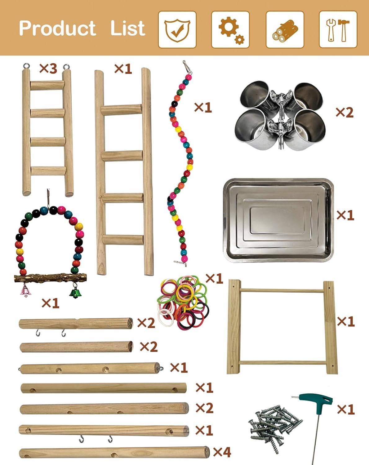 Bird Play Stand, Large Parakeet Playground, Natural Wood Parrot Perch Stand, Bir