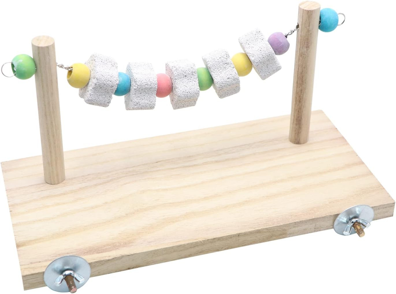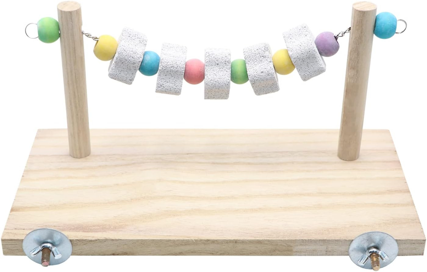 Wooden Stand Platform with Grinding Toys Bird Perch Stand for Parakeets Cockatie
