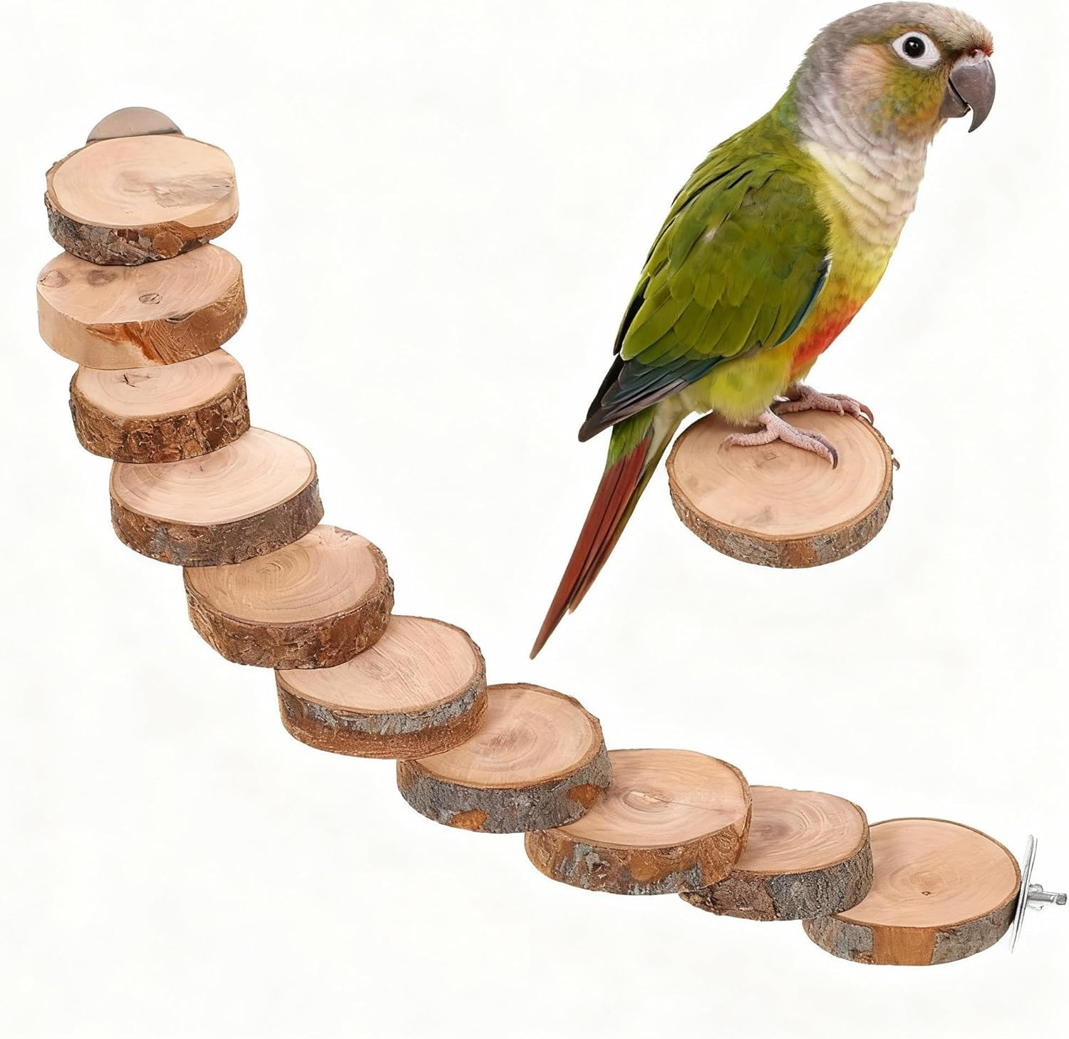 Natural Wood Bird Ladder for Cage - Bird Cage Ladder Flat Perches - Parrot Perch