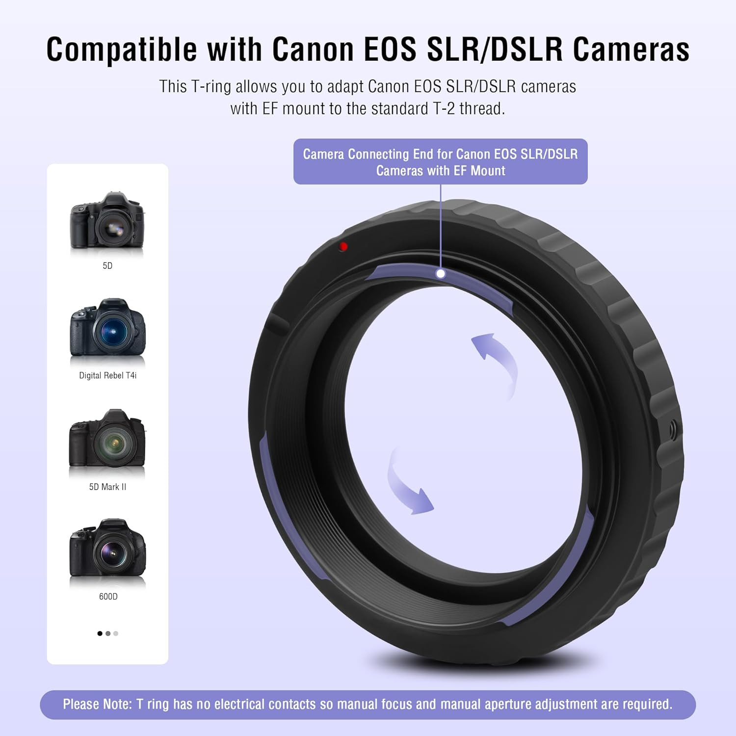 T2 T Ring Adapter with 42Mm Diameter Thread Compatible with Canon EOS DSLR/SLR C