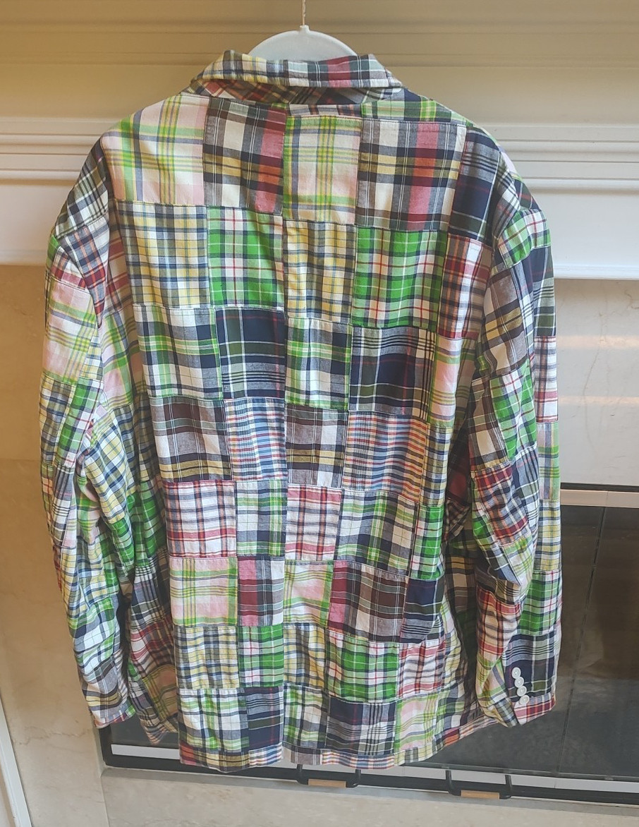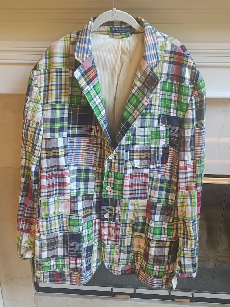 как выглядит POLO Ralph Lauren Vintage XL Plaid Patchwork Madras Blazer Preppy Old Money NWT фото