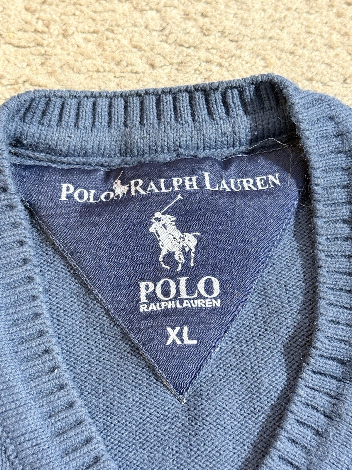 как выглядит Polo Ralph Lauren blue V-neck sweater fits men large beautiful blue big pony фото