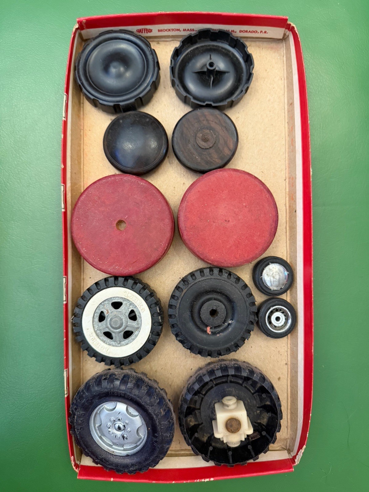как выглядит Lot Of 100 Vintage 60s/70s Toy Parts - Cars, Wheels, Axles, Wagon, More фото