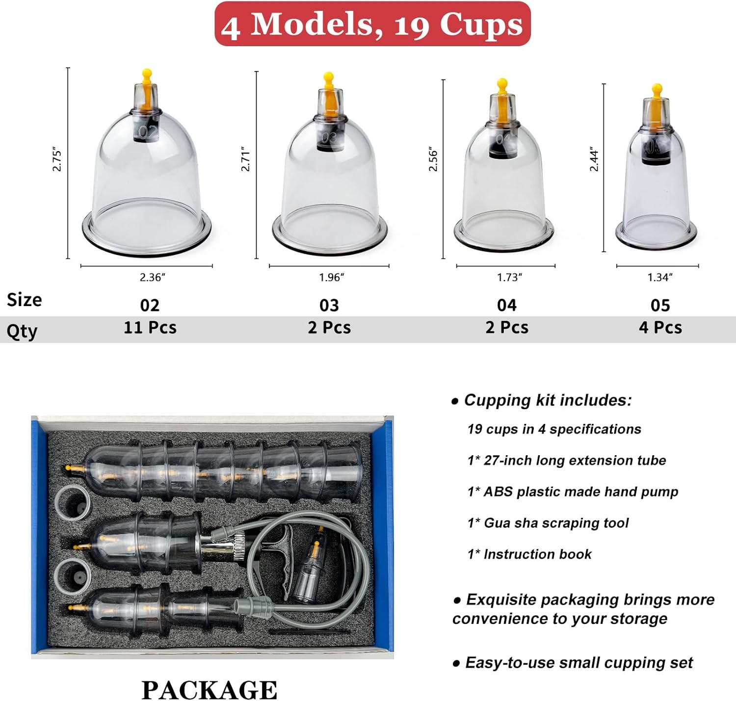 Cupping Therapy Set 19 Massage Cups for Back Pain Relief Physical with Hand Pump