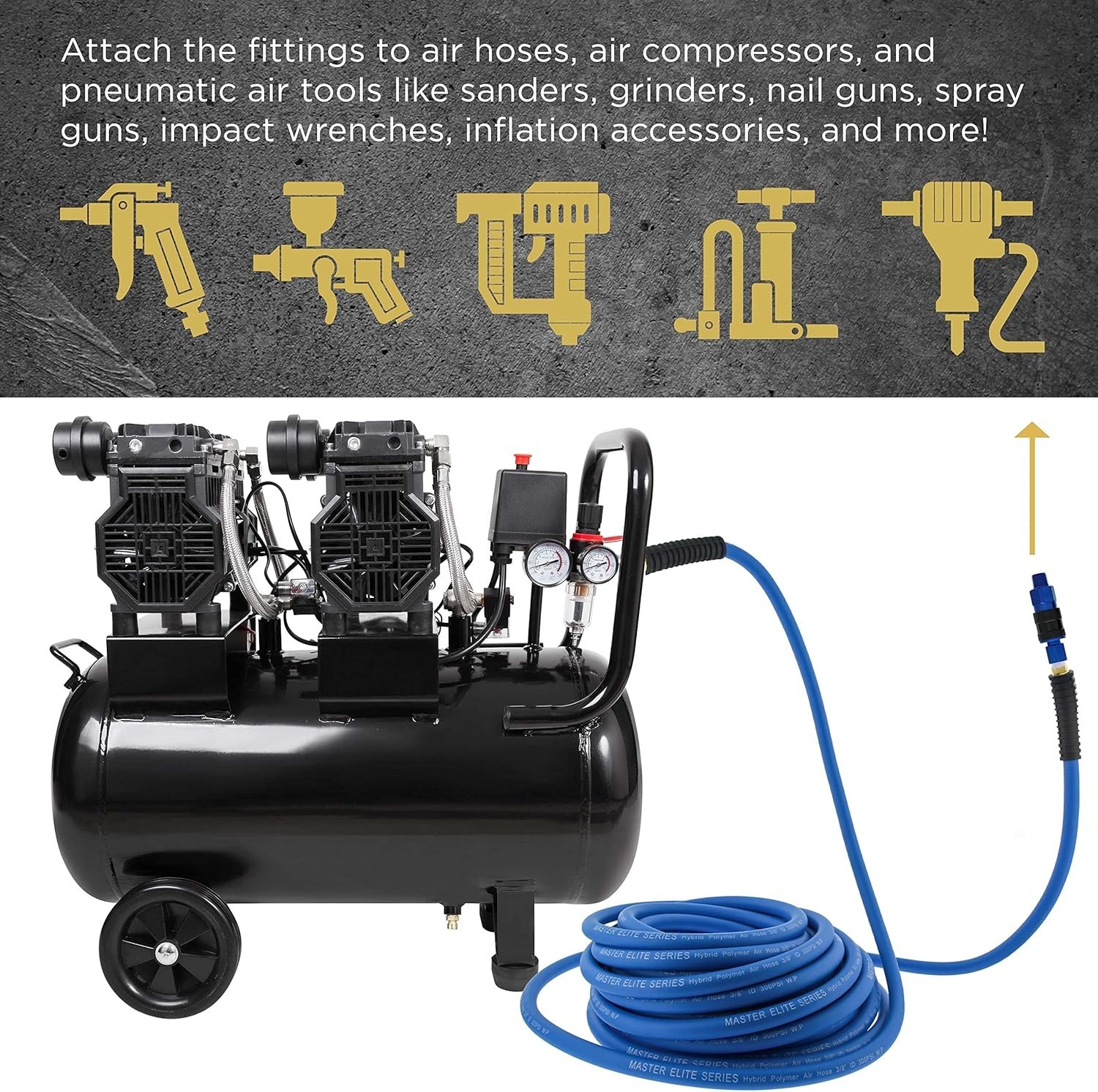 Master Elite Series 8 Piece Universal Air Hose Quick Push Connect Coupler Set wi