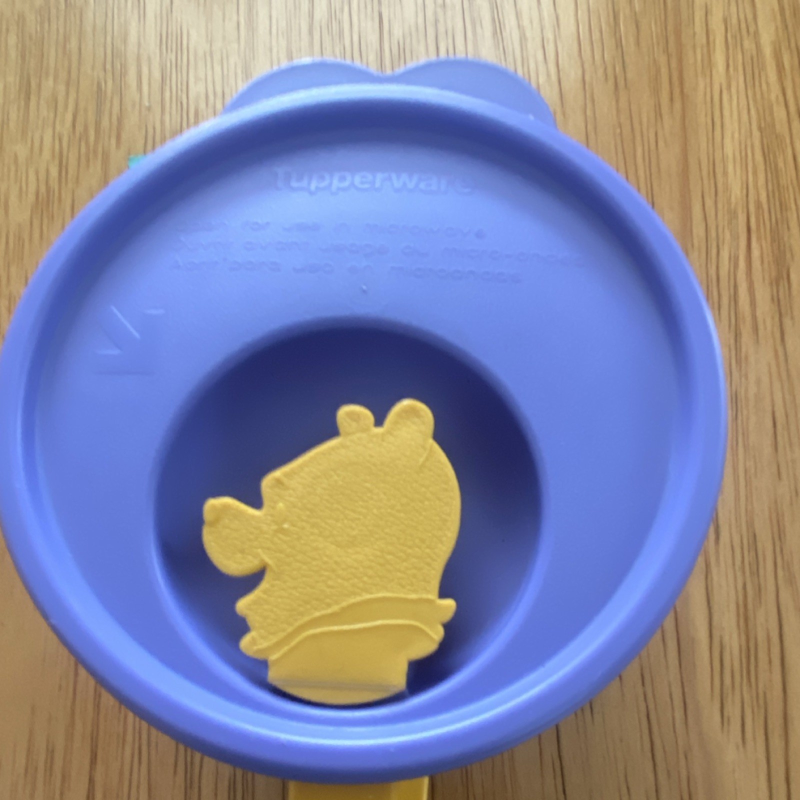 как выглядит Tupperware Winnie the Pooh Piglet Kids Yellow 16oz Cup w Purple Snap Lid Set фото
