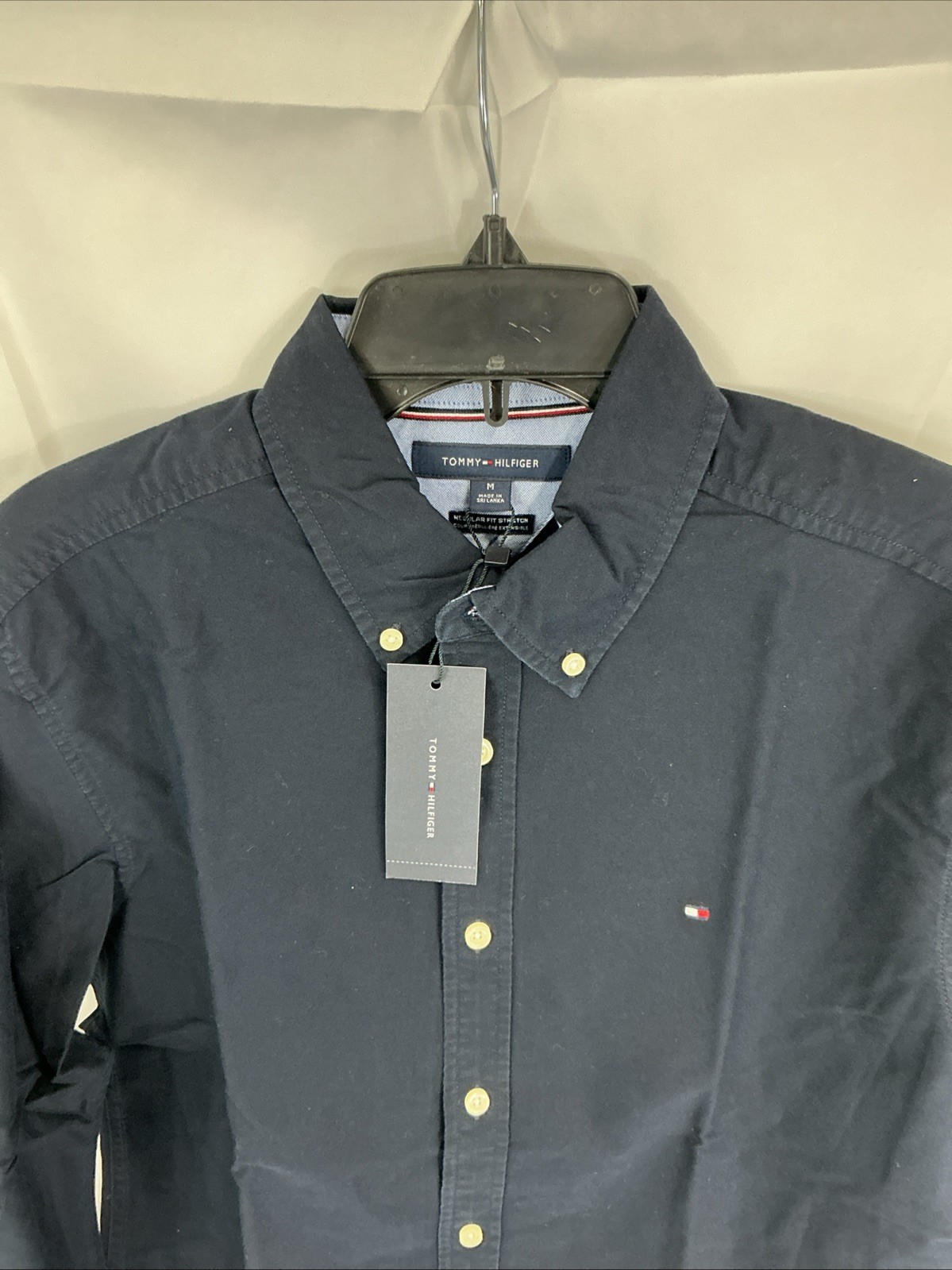 как выглядит Tommy Hilfiger Mens Medium Navy Blue Button Up Shirt 100 Cotton фото