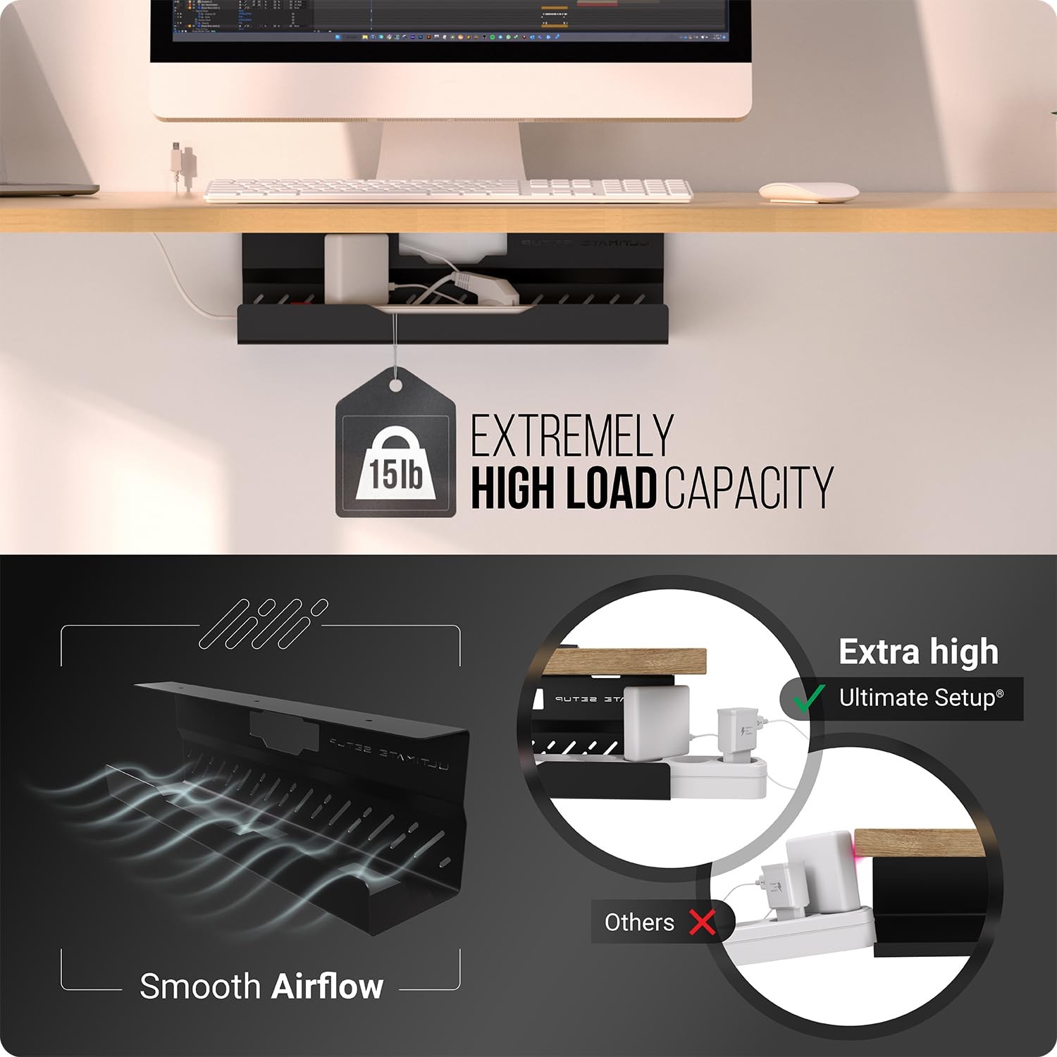 Under Desk Cable Management Tray no Drill Wire 1 piece set, Black