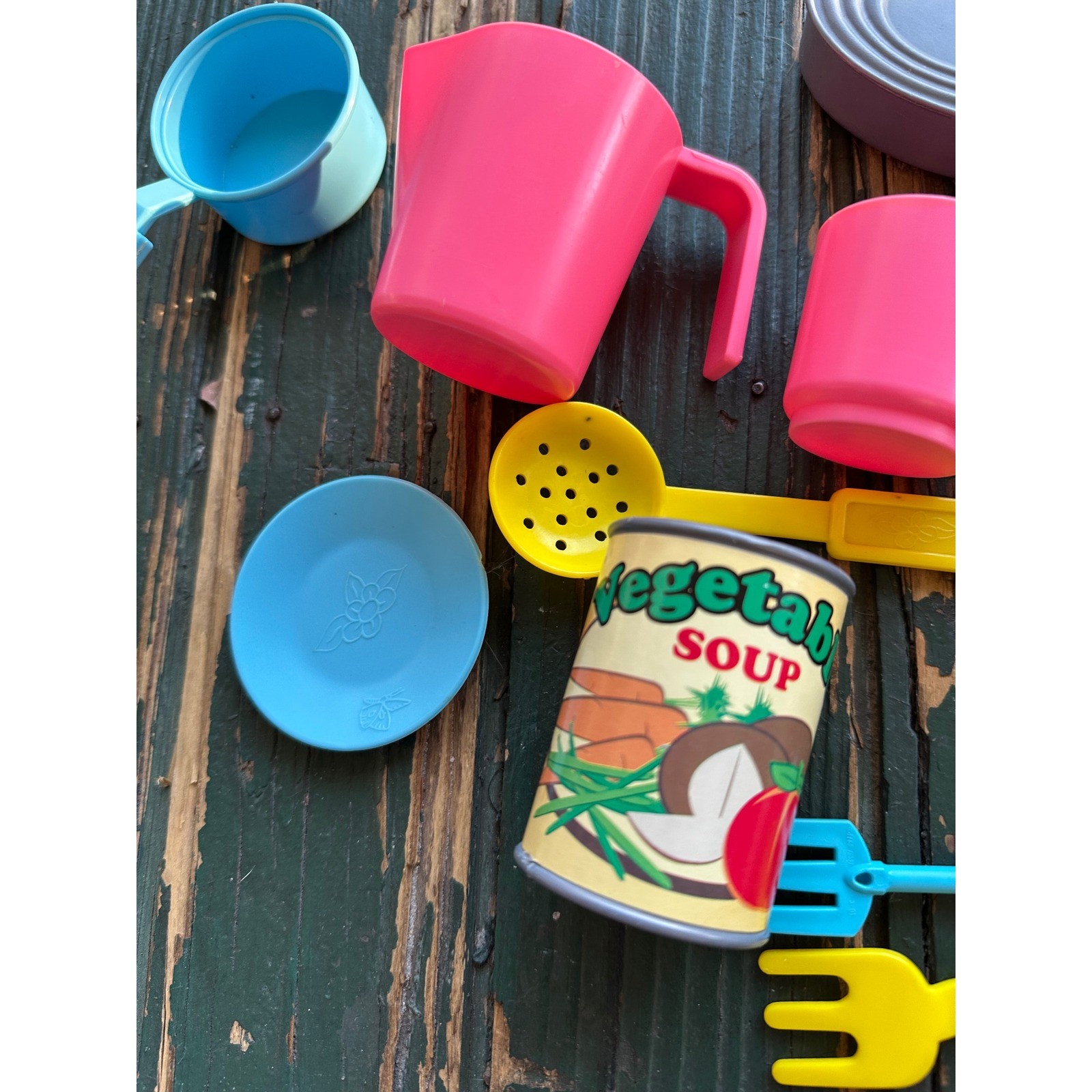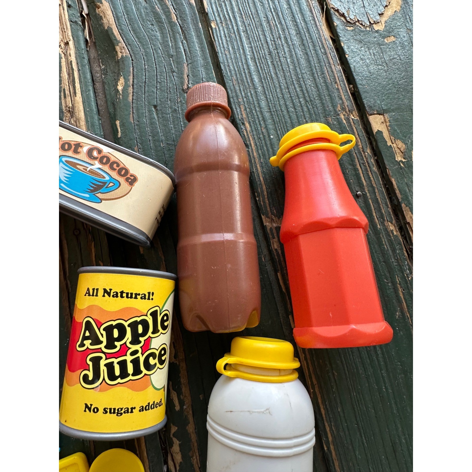 как выглядит Vintage Play Food Kitchen Accessory Lot Plastic Grocery Cans Bottles Dishes 14pc фото