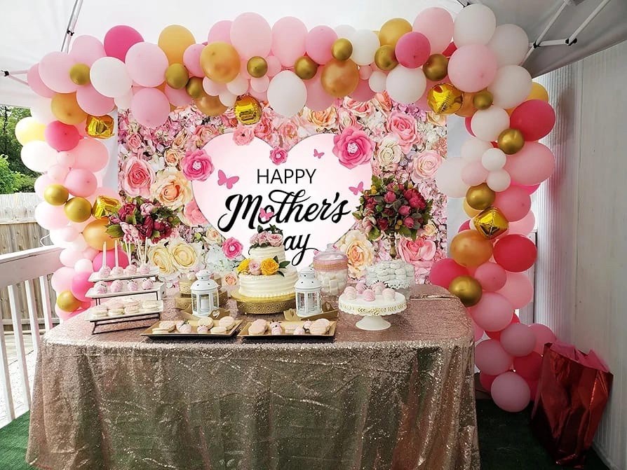 Happy Mother's Day Banner Backdrop 7x5FT Pink Rose Wall Thank Mom Background