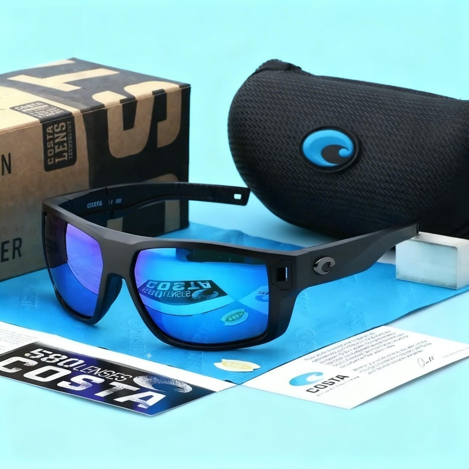 Costa Del Mar Diego Matte Black Blue Mirror Polarized Sunglasses 580P