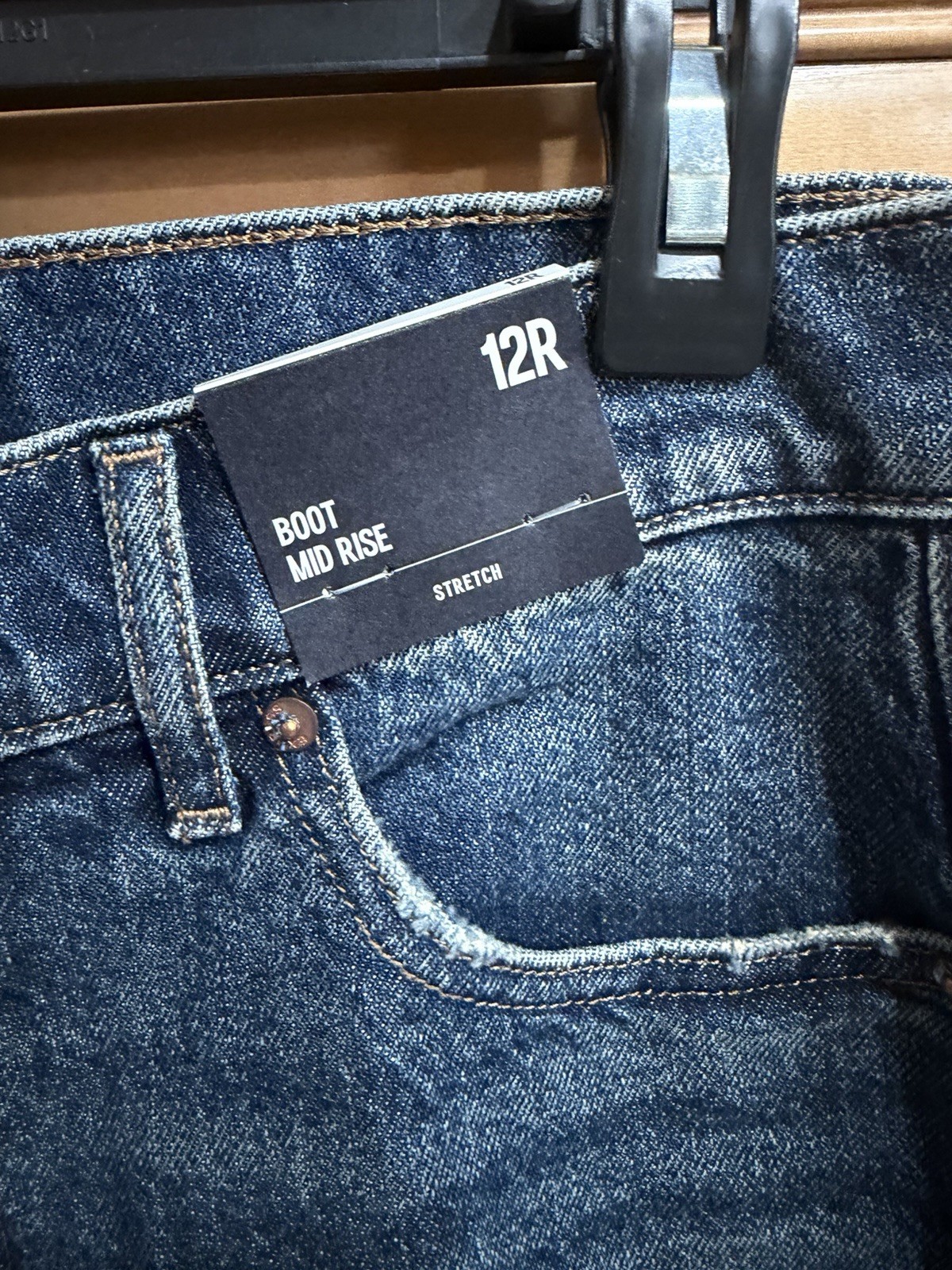 как выглядит Express Bootcut Mid-Rise Stretch Blue Denim Jeans 5-Pocket Design Women фото
