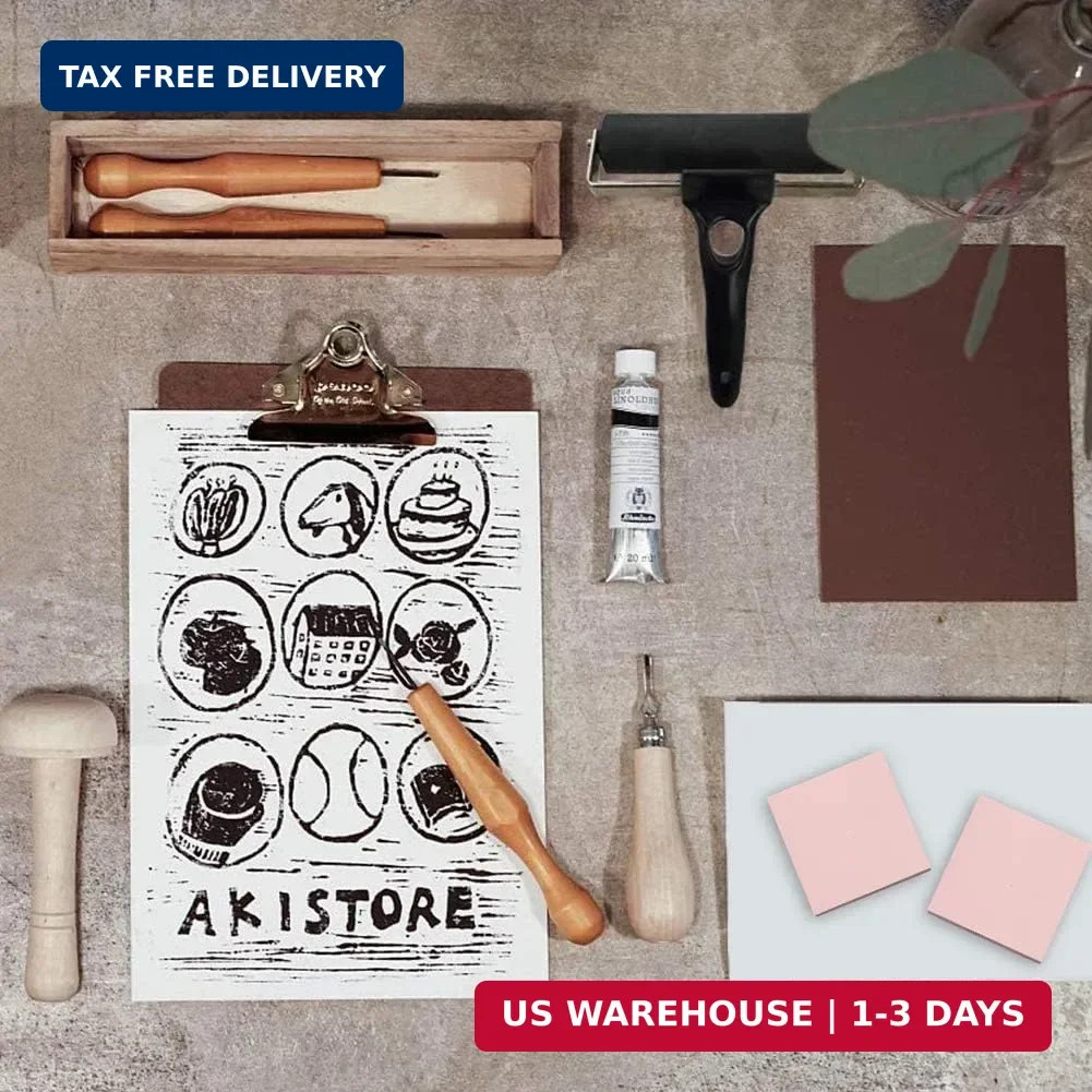 8 PCS Rubber Linoleum Blocks 2x2 Inch Printing Kit For Stamp Carving Art