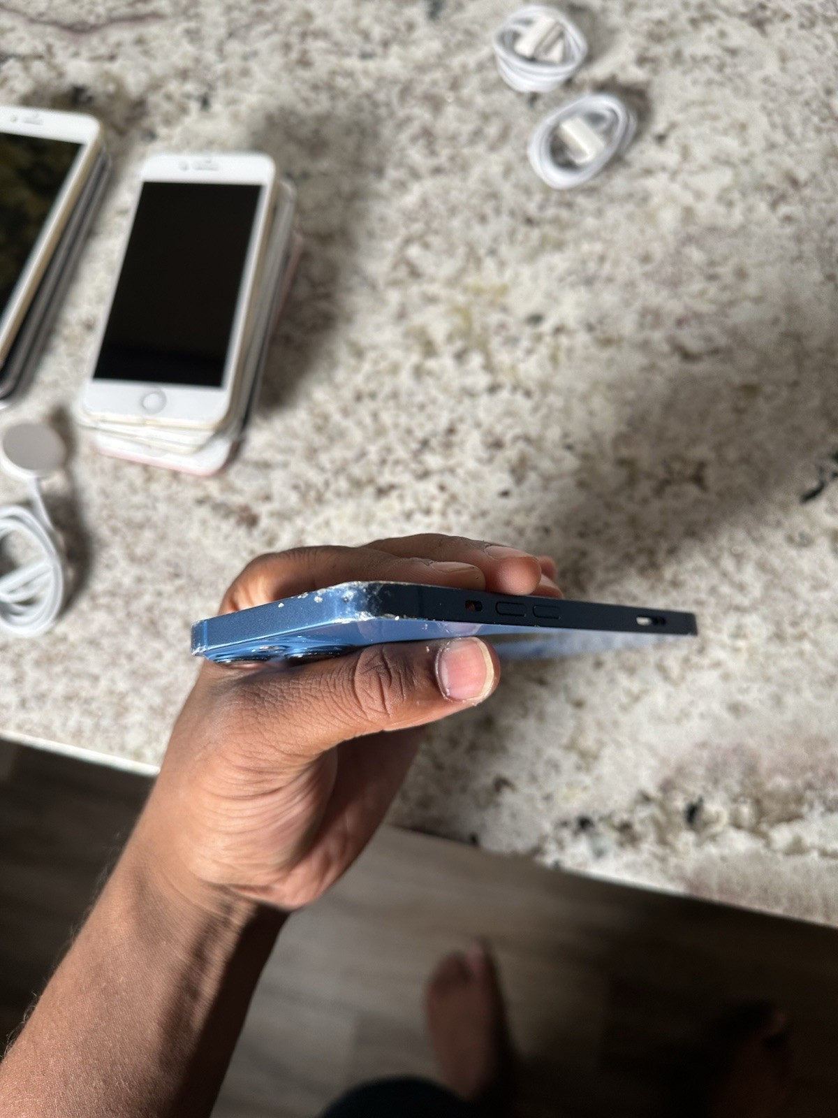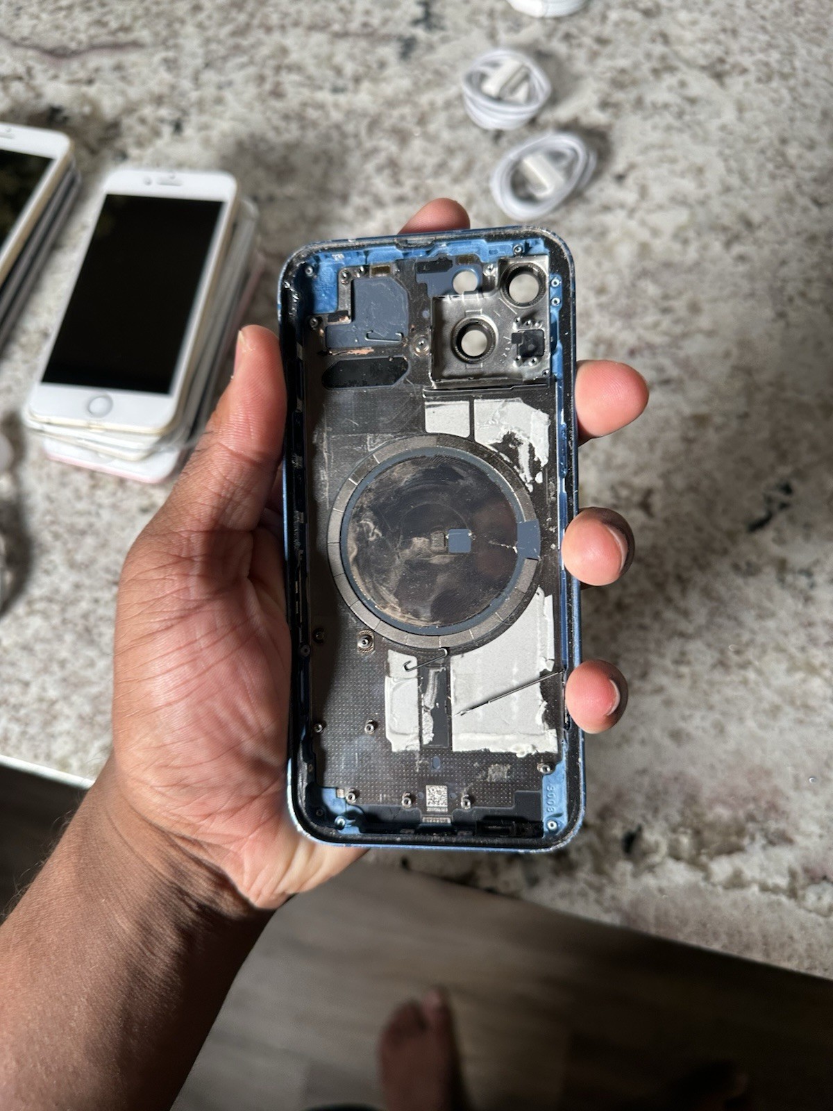 как выглядит iPhone 13 Blue Back Housing Replacement With Small Parts Frame OEM Pull фото