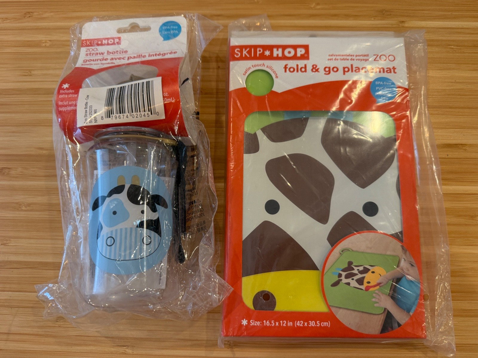 Skip Hop Zoo GIRAFFE Fold Go Silicone Meal Placemat COW Straw Bottle Toddler lot