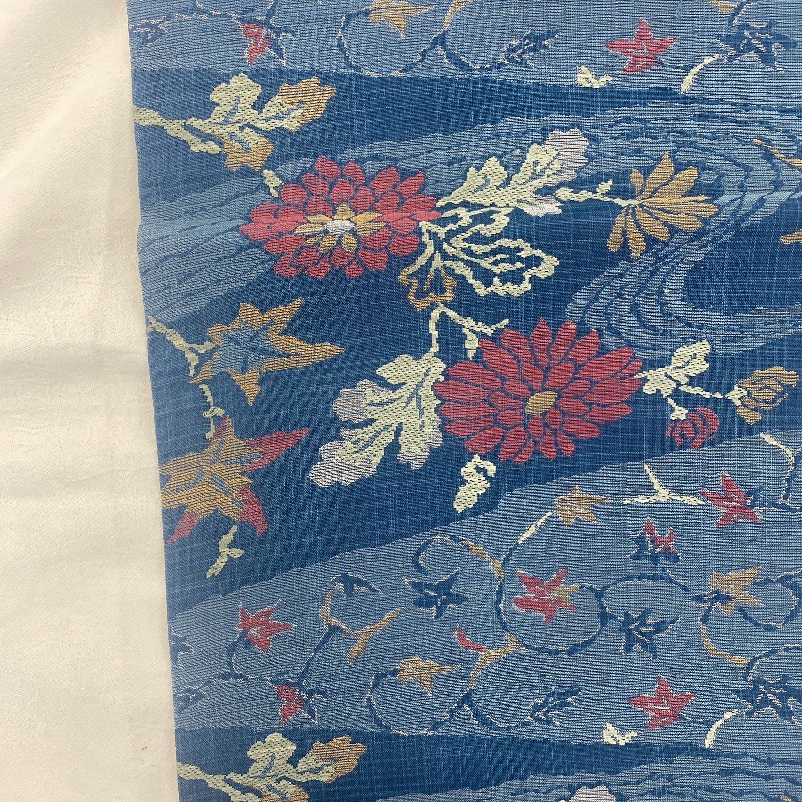 как выглядит Japanese Vintage Kimono Fukuro Obi Silk Blue Traditional Embroidery 157 x 12 in фото