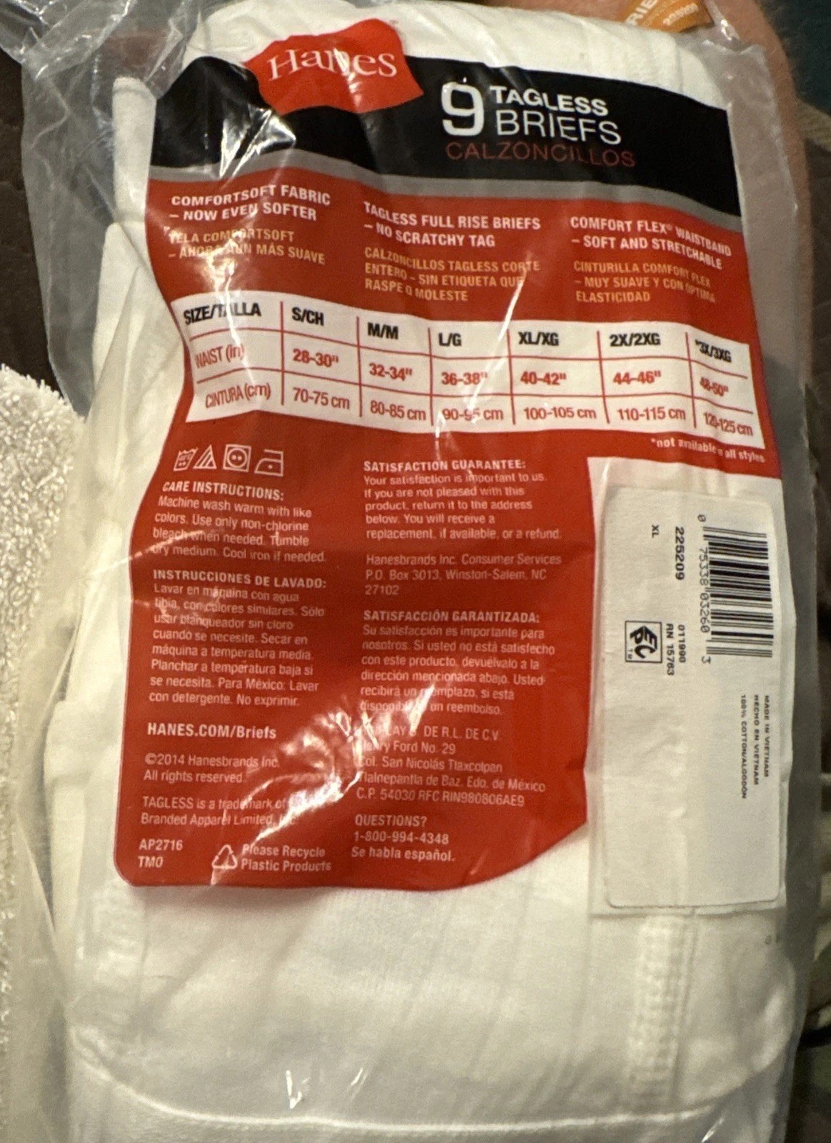 9 ad pack,40-42 , Hanes Mens XL Tagless White Briefs new underwear
