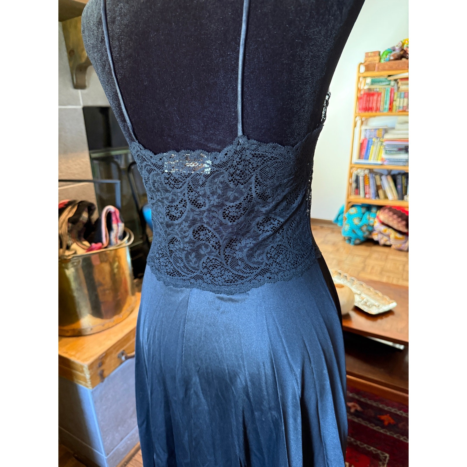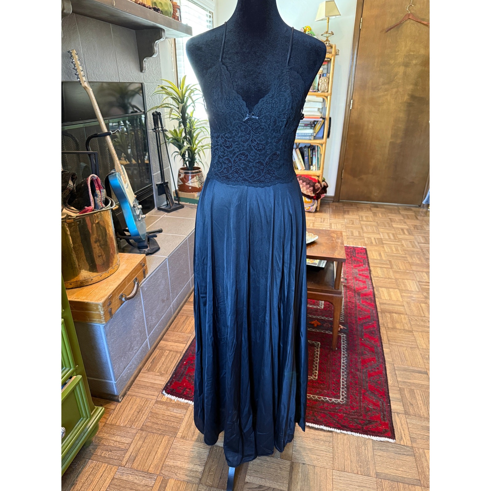как выглядит 1980s Vintage Vassarette Black Lace Night Slip with Chiffon and Lace Peignoir фото