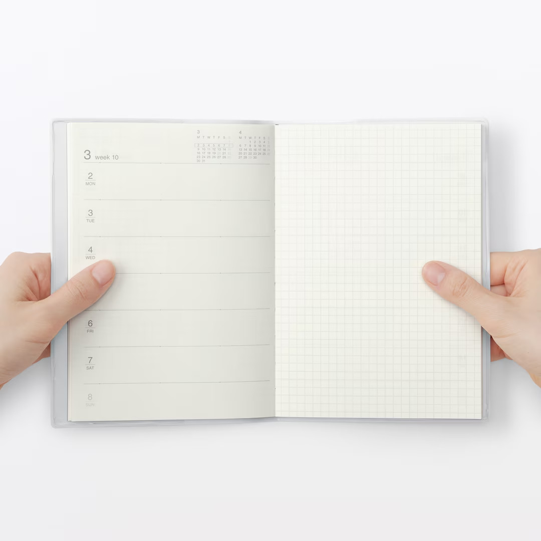 как выглядит MUJI 2026 Mar Start Monday Monthly Weekly Planner B5 Dark Gray White Gray фото