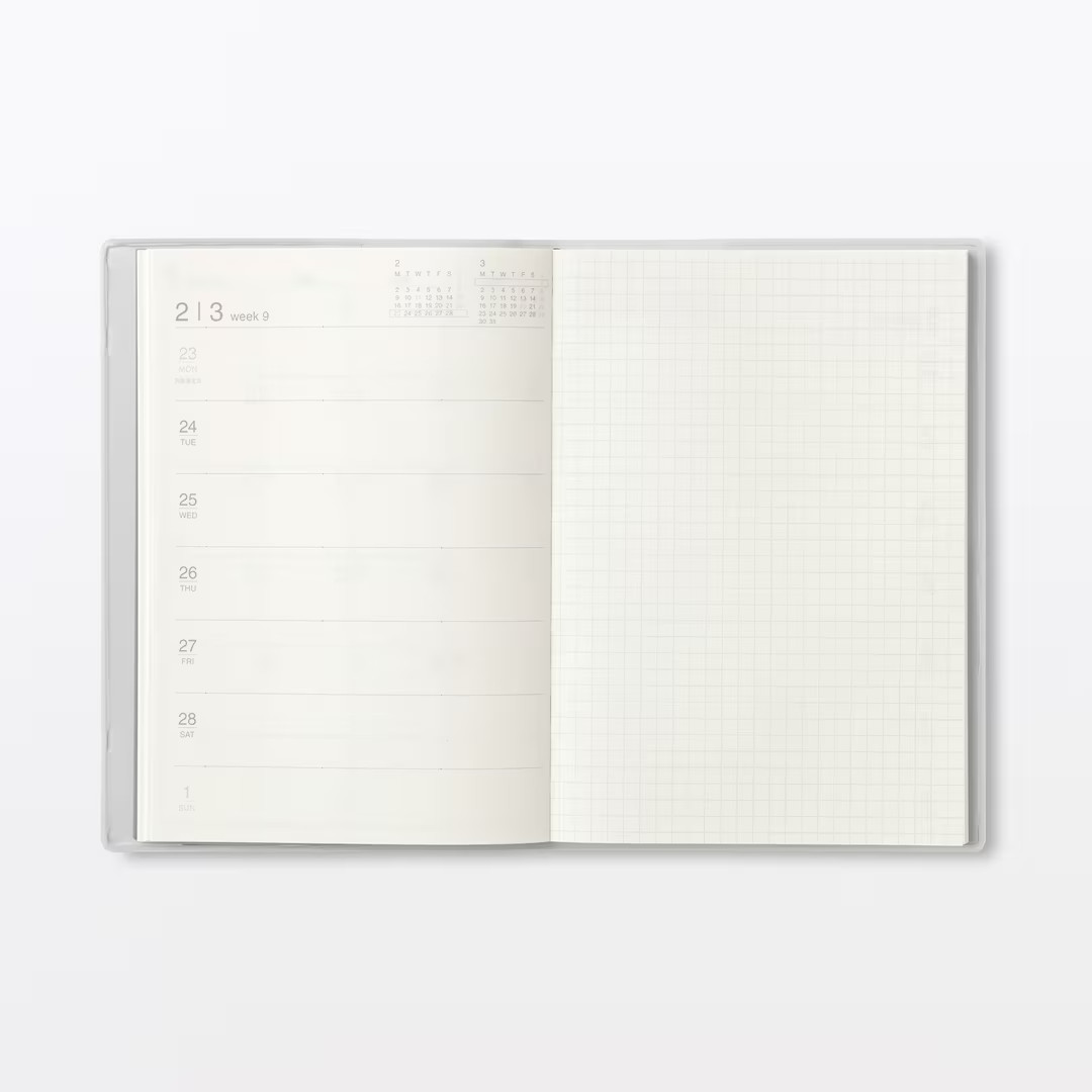 MUJI 2026 Mar Start Monday Monthly Weekly Planner B5 Dark Gray White Gray