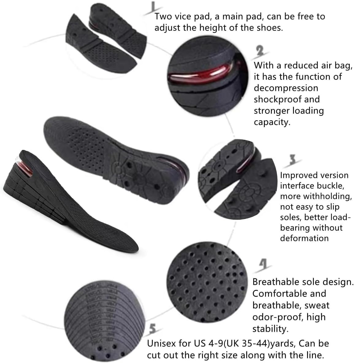 как выглядит Height Increase Insoles, 2.95in Elevator Lifts, 4-Layer Shoe Inserts Unisex фото