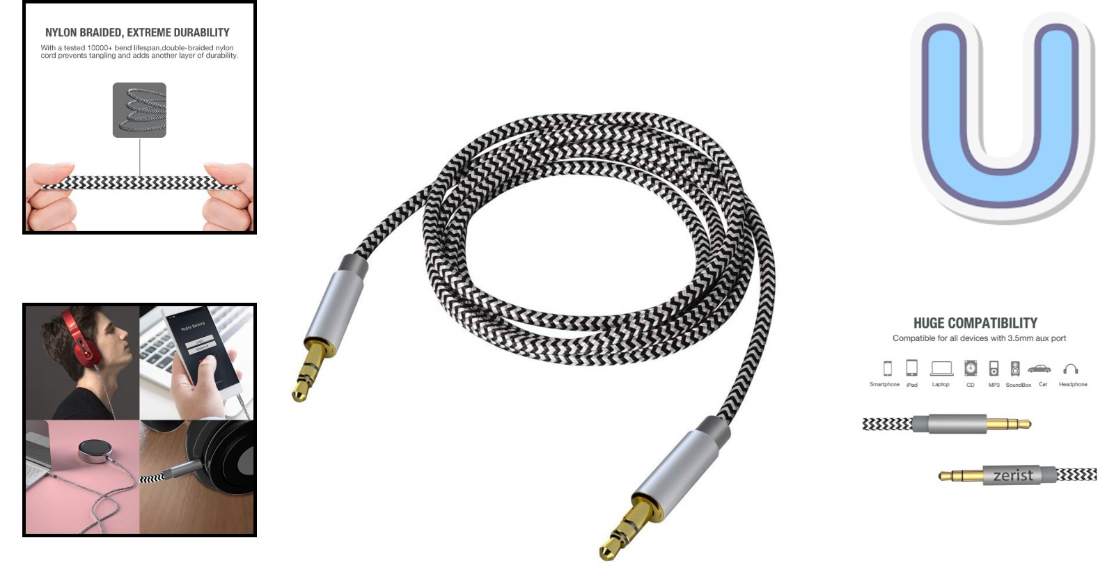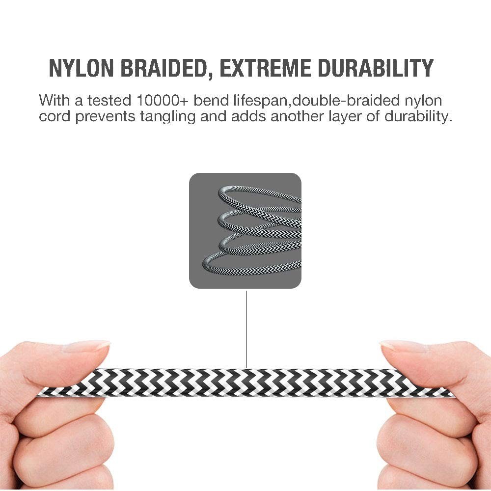 Durable 10ft Tangle-Free AUX Cable with Nylon Braids for iPhones and More