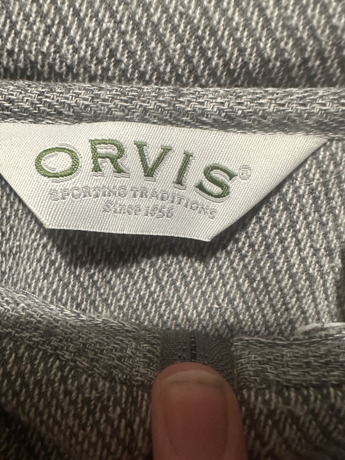 как выглядит Orvis Men s Gray 1/4 Zip Pullover Leather Elbow Patches Size XL фото