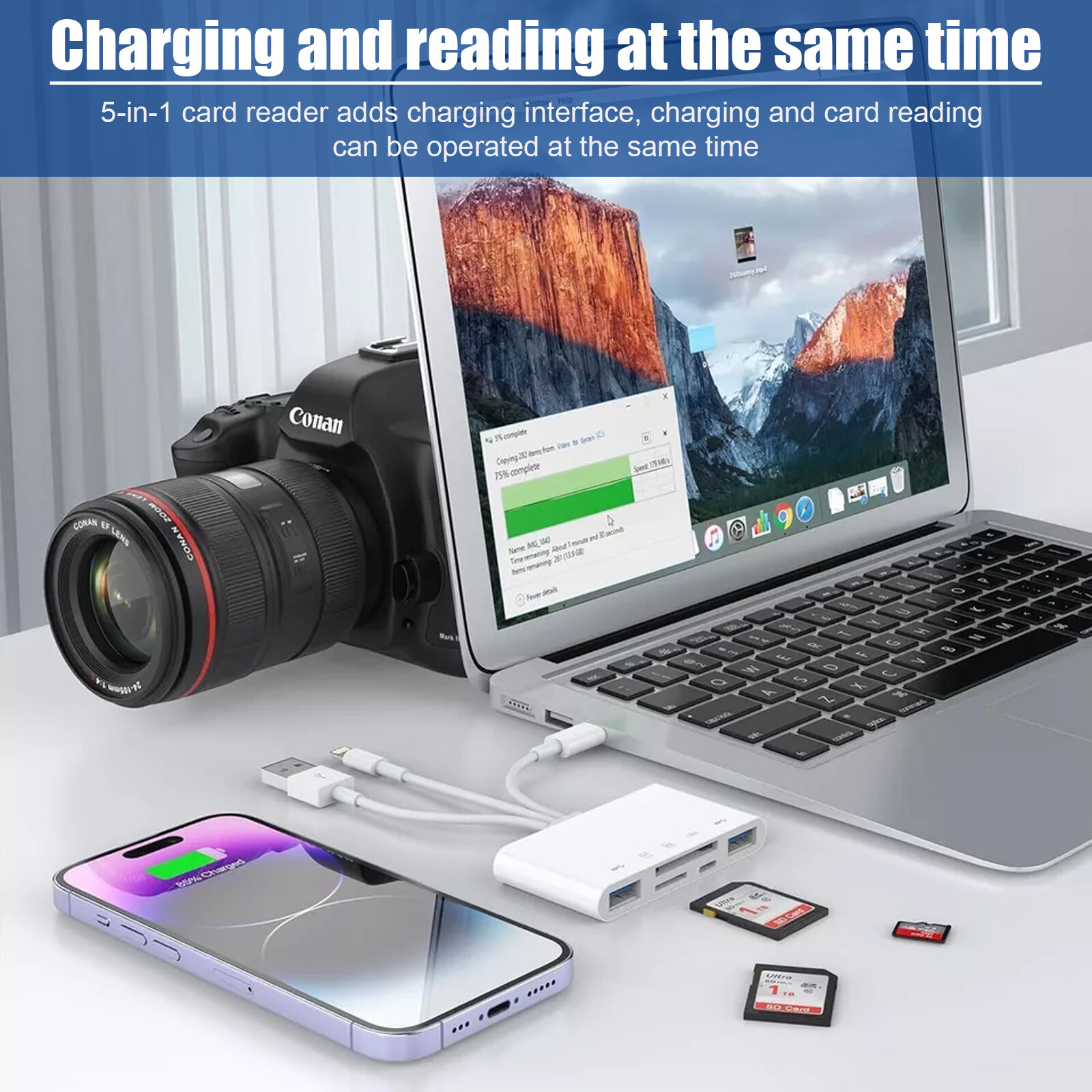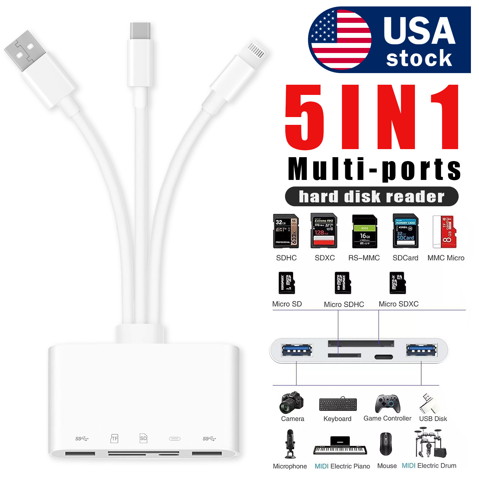 5-in-1 USB 3.0 OTG Card Reader SD/TF Adapter for iPhone, iPad Smartphones
