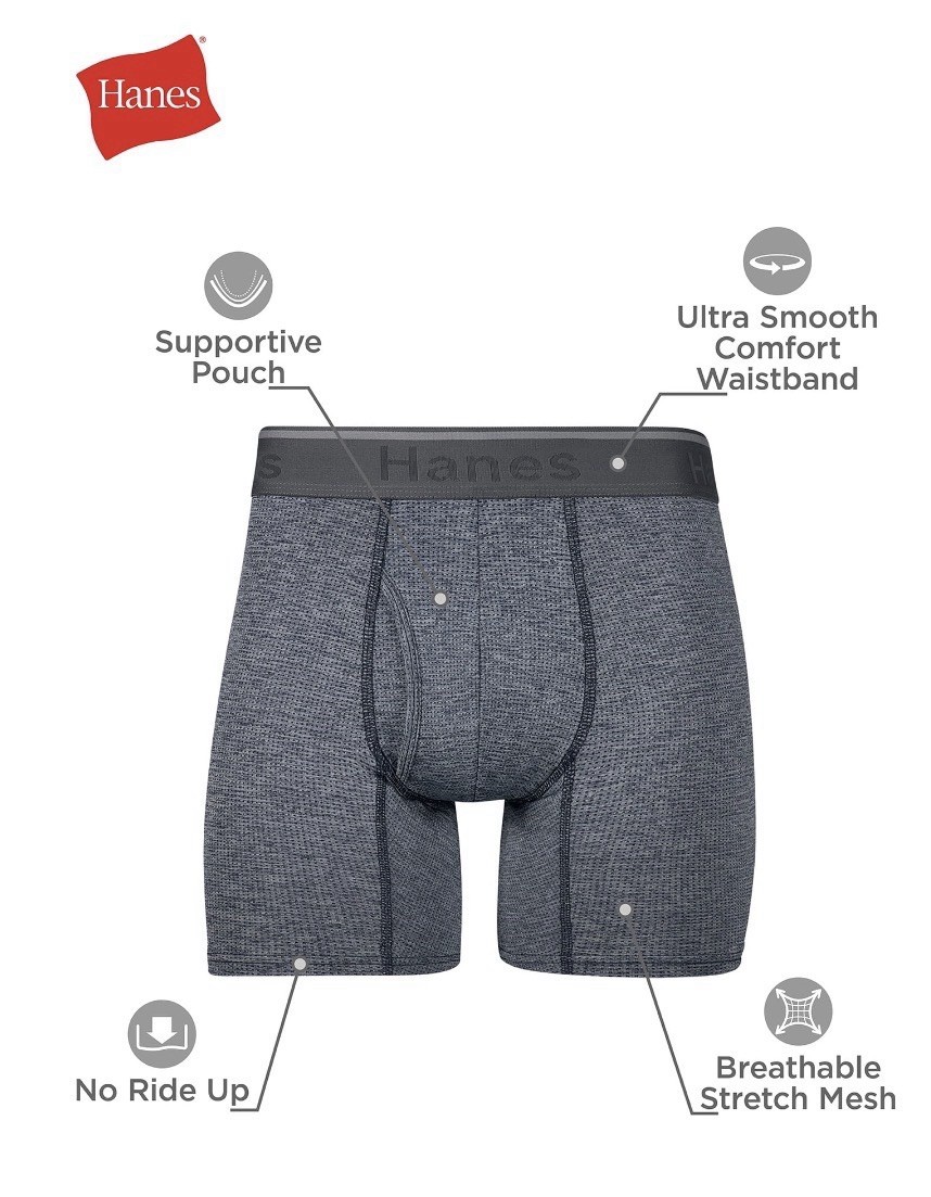 Hanes Mens Boxer Briefs 6 Pack Large L 36-38 Comfort Flex Fit Stretch Mesh