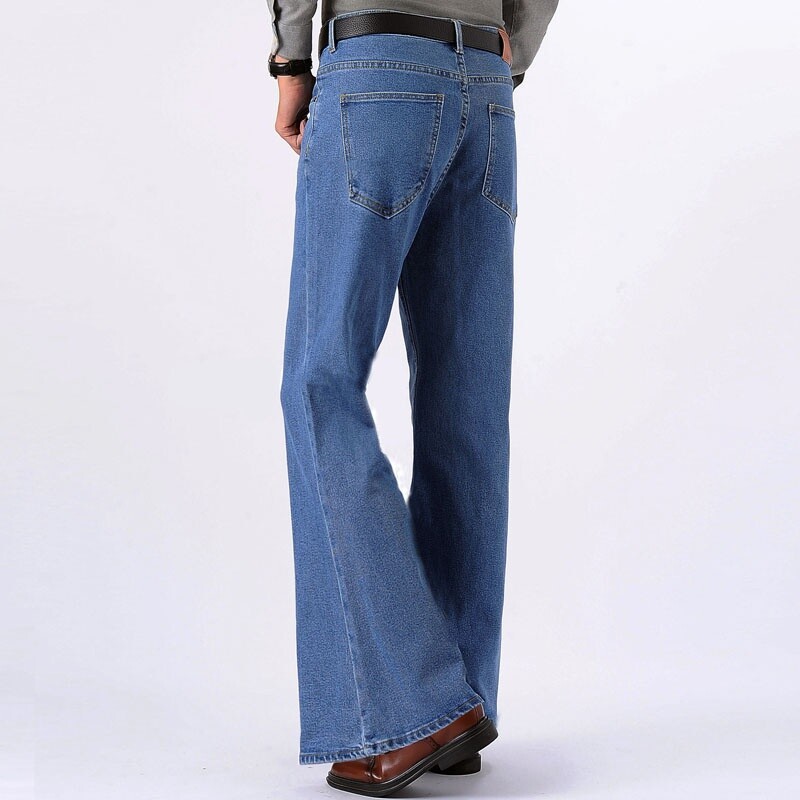 как выглядит Mens Bell Bottom Jeans Flared Denim Pants Retro 60s 70s Trousers Slim Fit Casual фото
