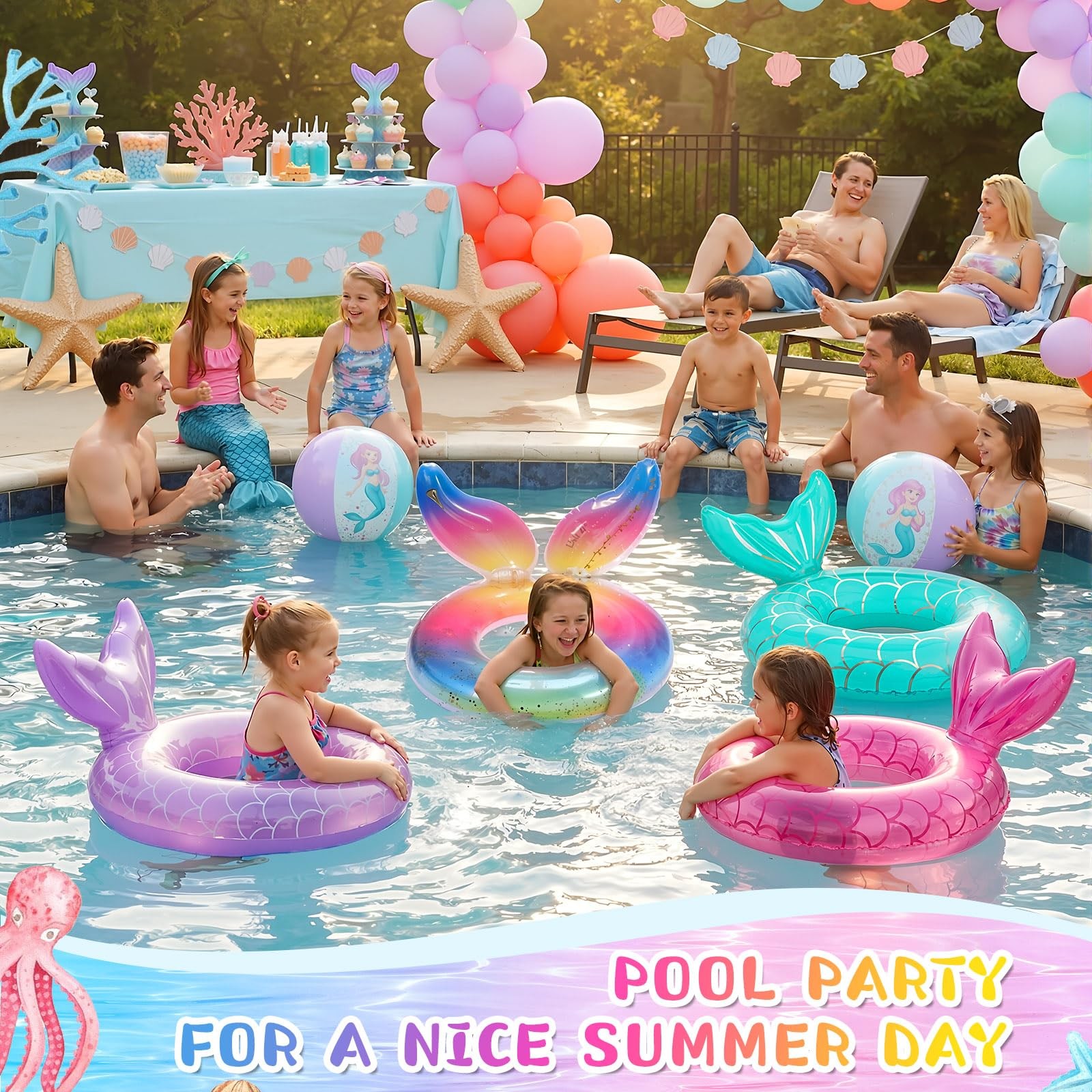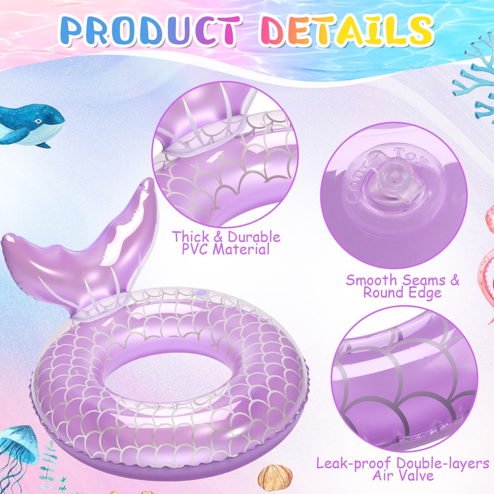 4 Pcs Mermaid Pool Float Inflatable Swimming Ring Mermaid Tail Pool Swimming ...