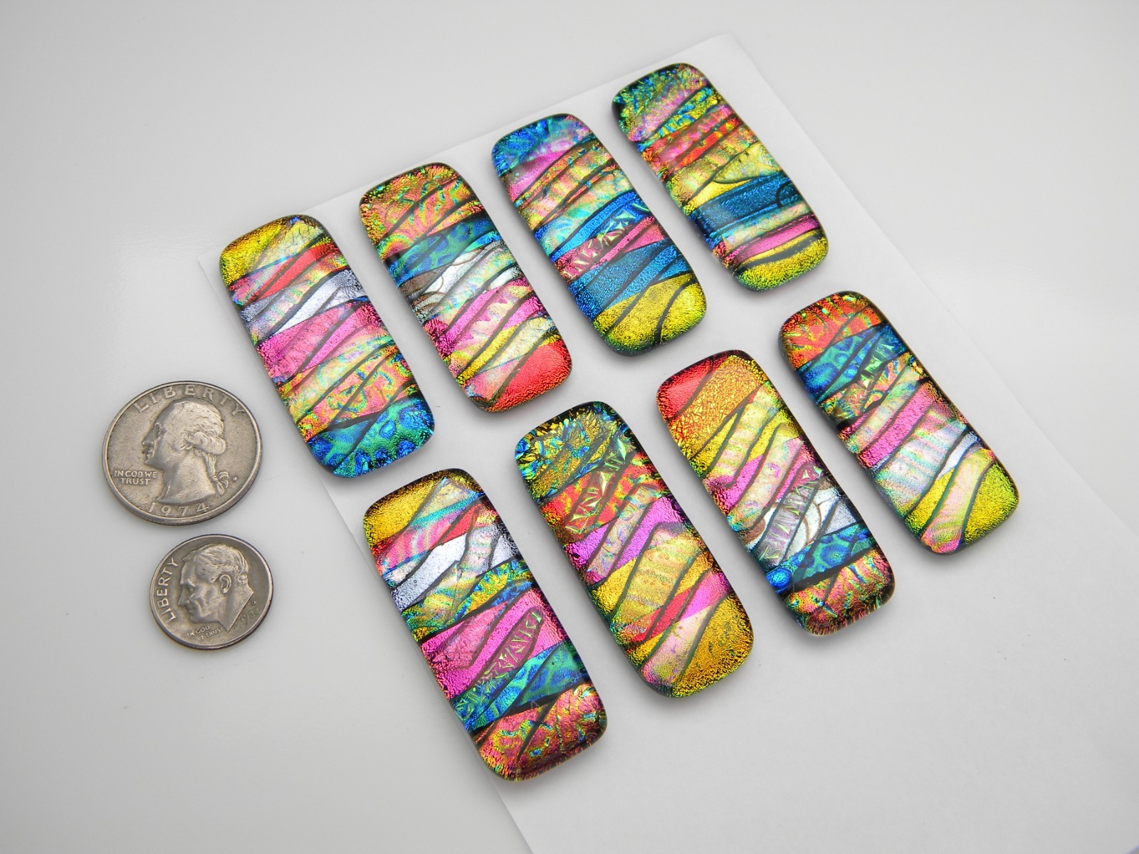 premium RECTANGLE Lot of 8 pcs handmade DICHROIC FUSED GLASS BJ17 cabs