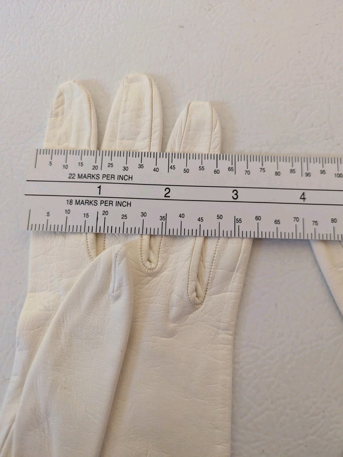 как выглядит Vintage Womens Cream White Kid Leather Gloves W/Scalloped Perforated Cuff READ фото