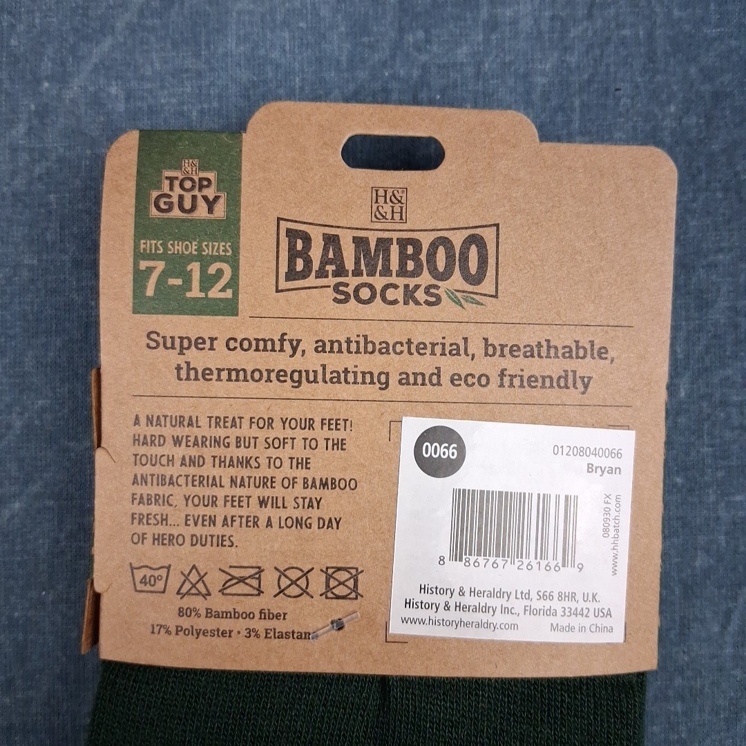 2 Pairs Bamboo Socks Men's 7-12 Bryan Green Crew Socks Soft Breathable Gift