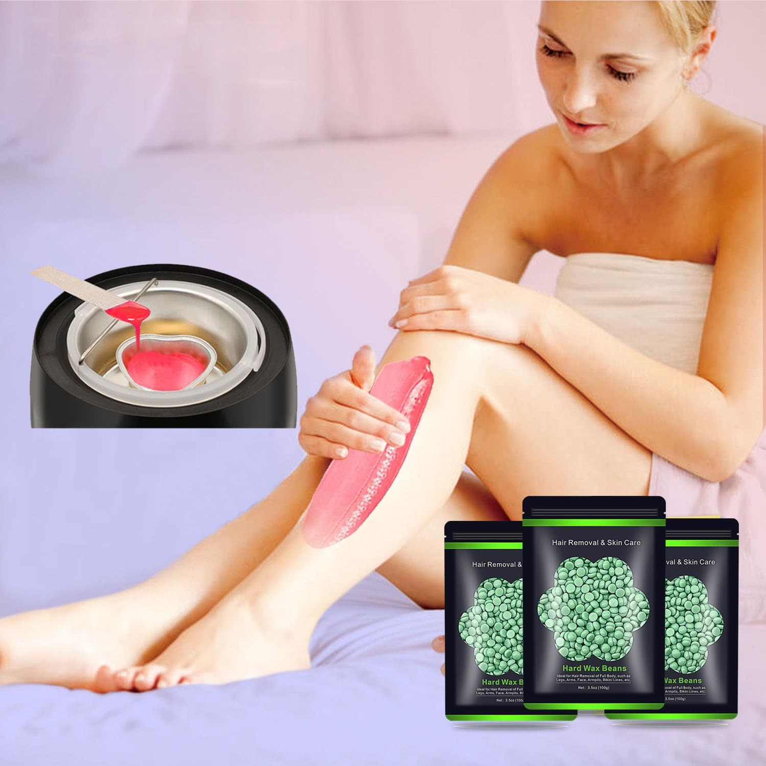 как выглядит Wax Beads for Hair Removal 10.5oz 300g , 3.5 Ounce Pack of 3 , 3 Tea Tree фото