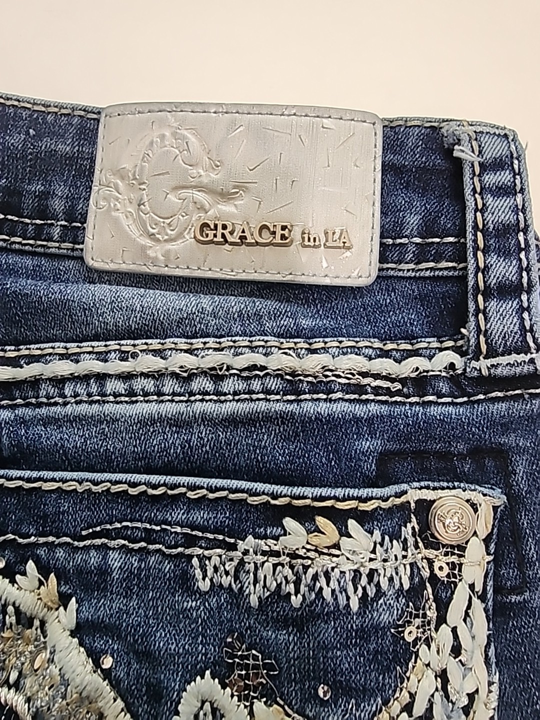 как выглядит Grace in LA Bootcut Jeans Womens Blue Embellished Stretch Denim Western фото