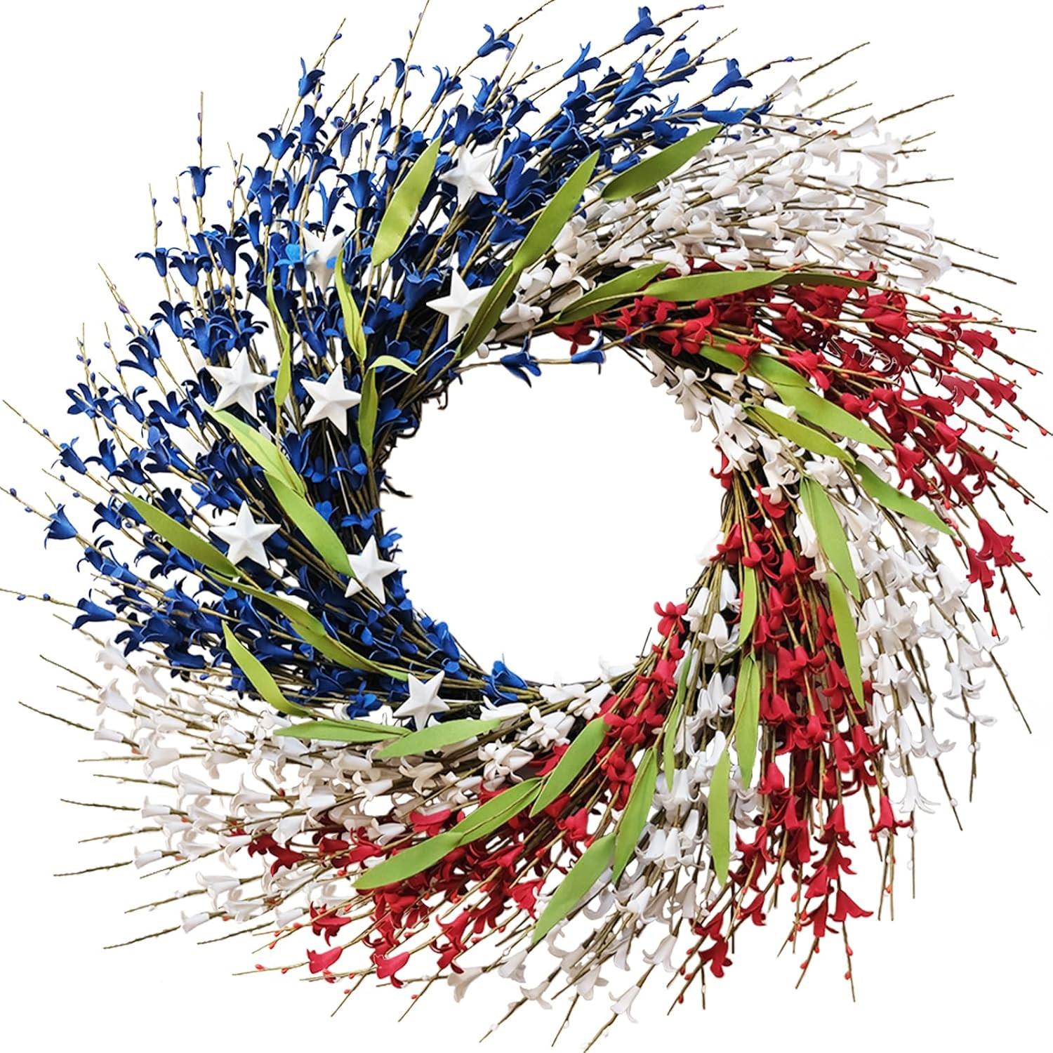 24 Inch Patriotic Wreath for Front Door, 4Th of July Wreath Red White and Blue w
