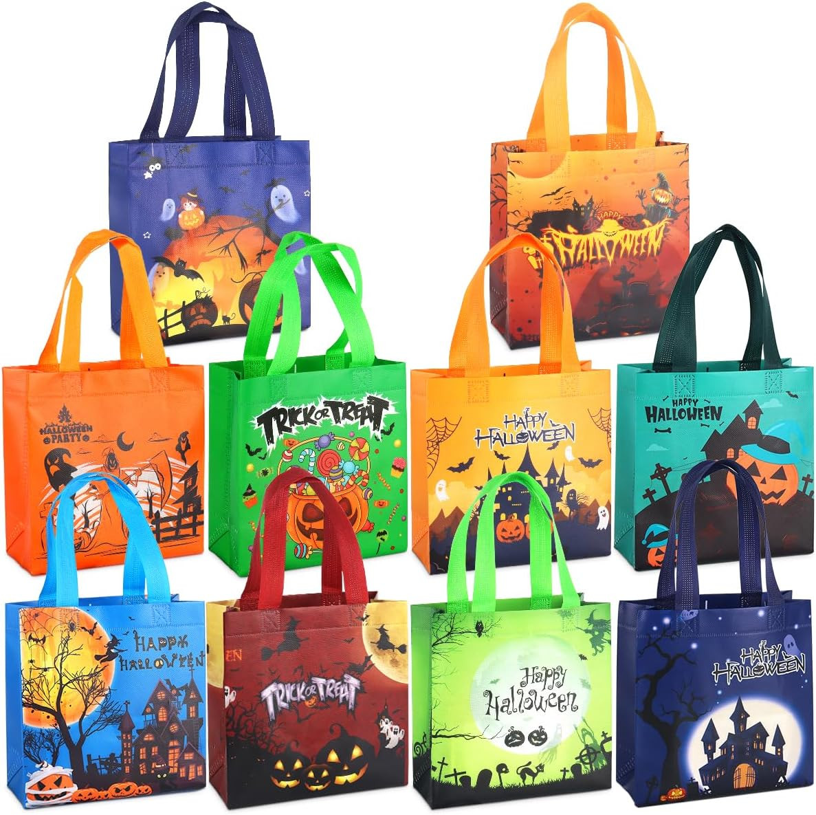 10PCS Halloween Trick or Treat Bags, Non-Woven Large Gift Tote Bags with Handles