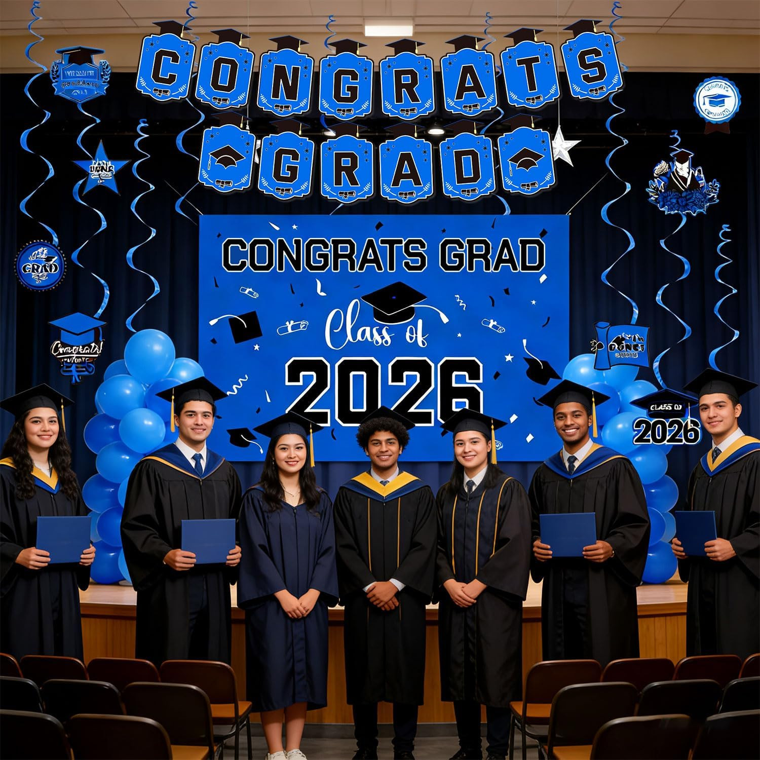 Graduation Decorations 2026 Blue Set - Grad Decor with Congrats Grad Banner,Clas
