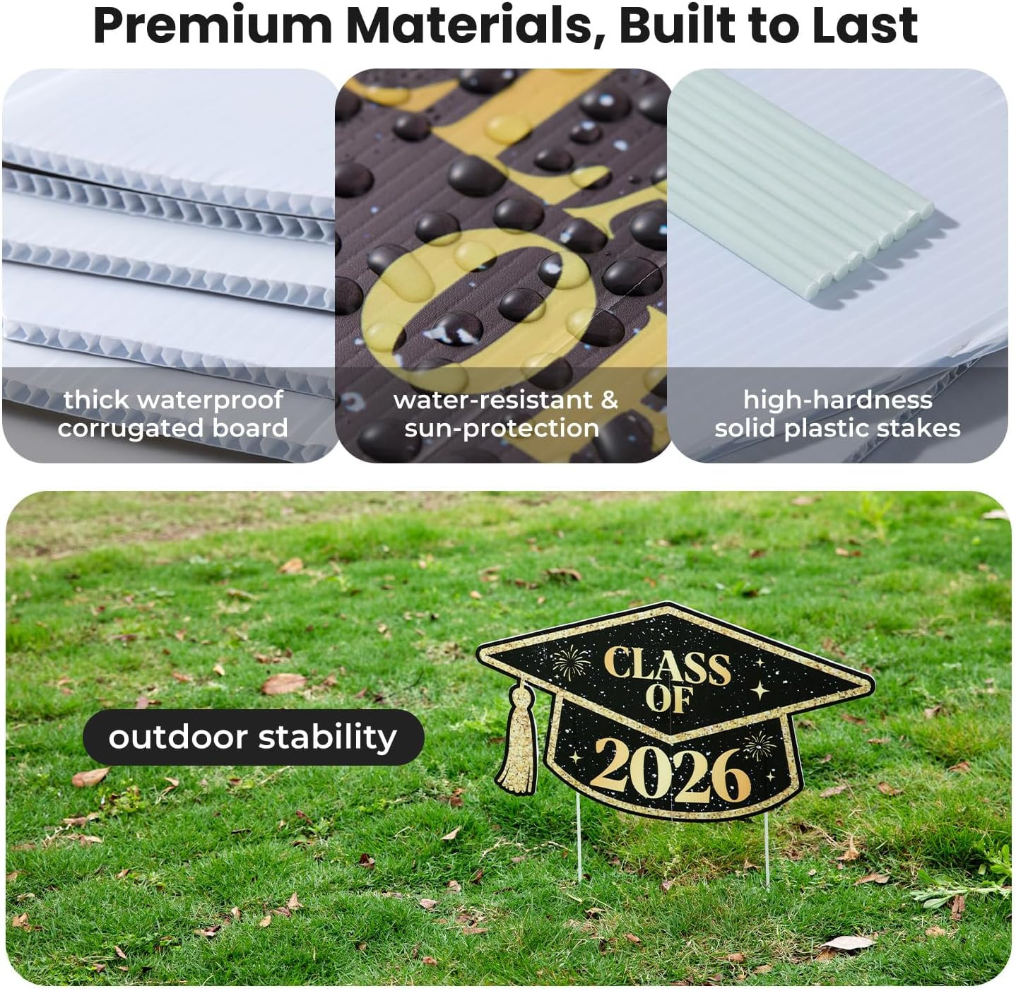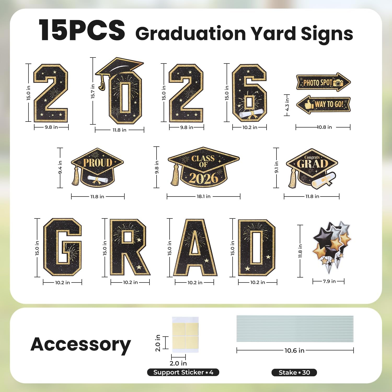 2026 Graduation Yard Signs, 15 PCS Black and Gold Congrats GRAD Lawn Signs with