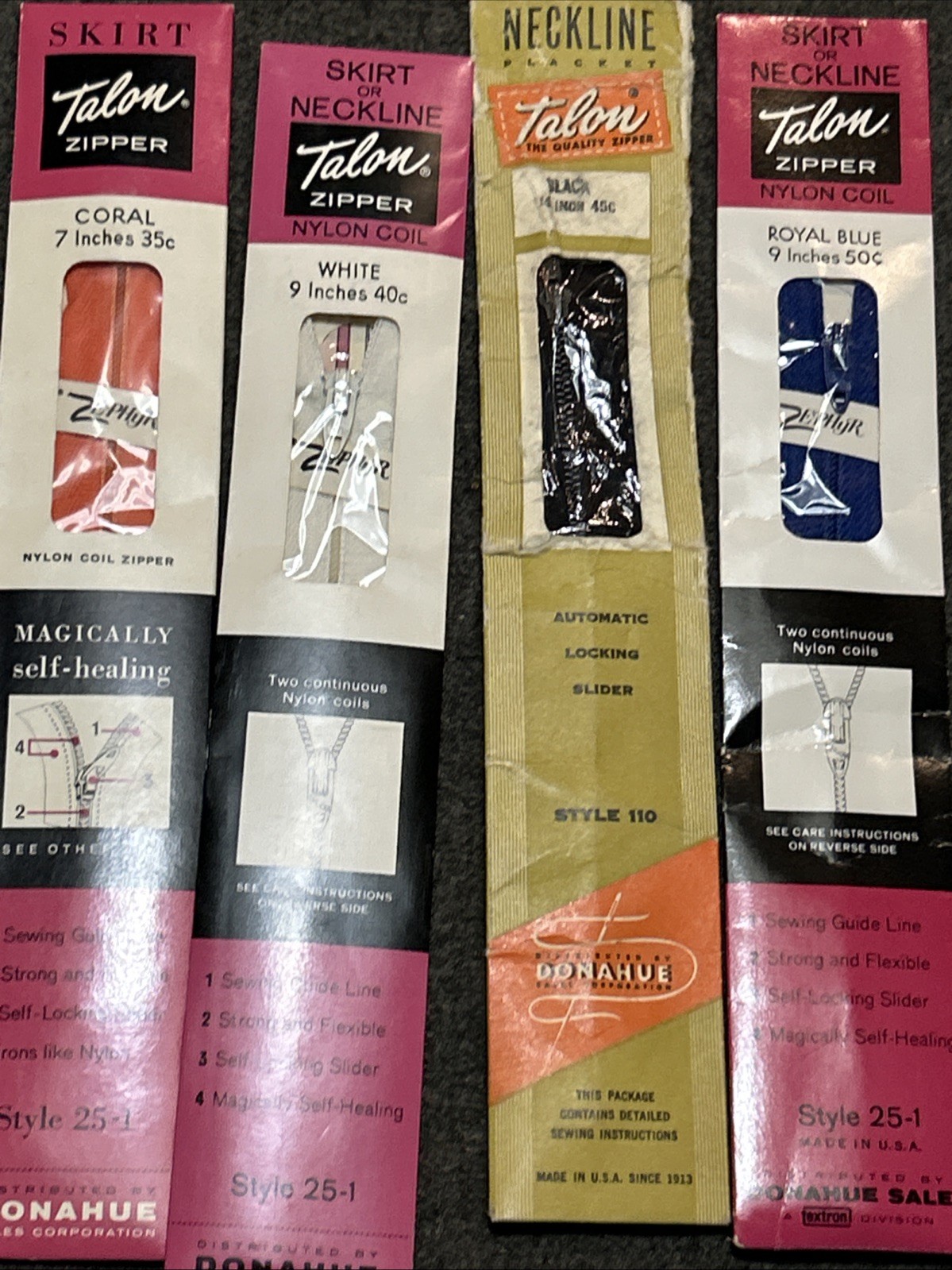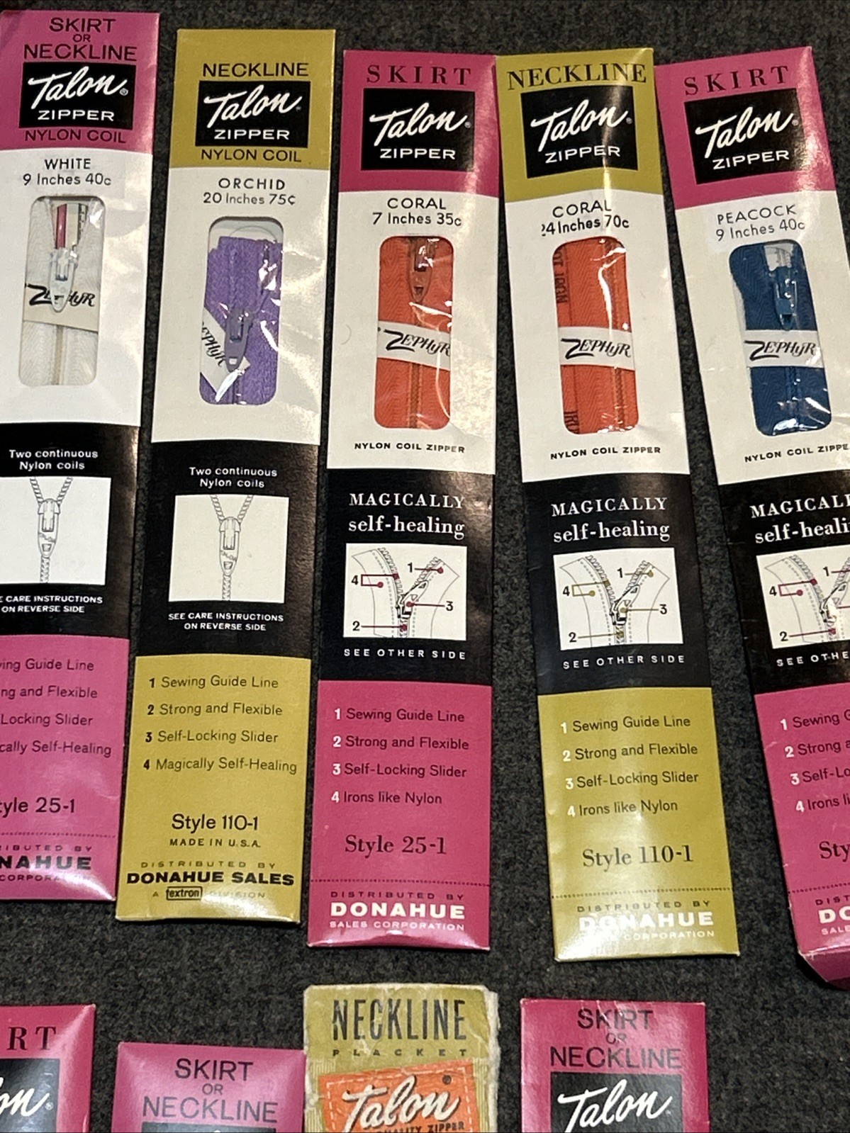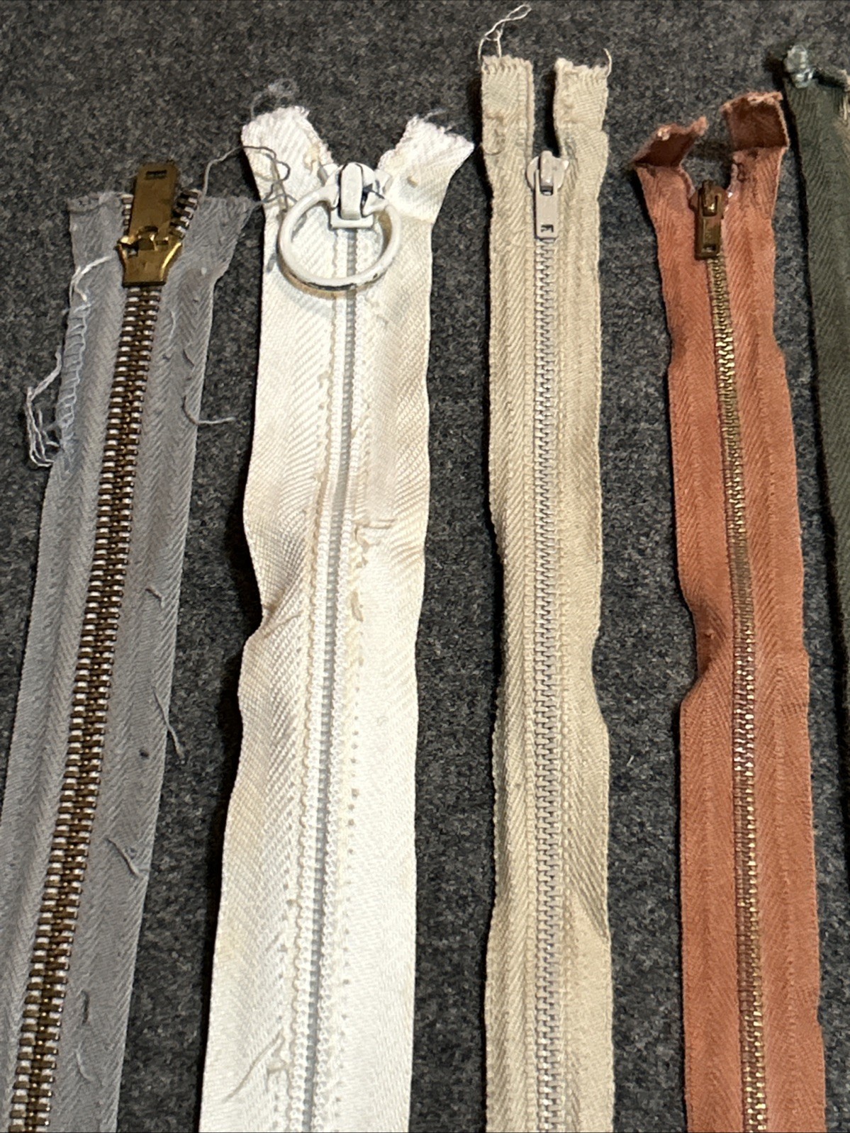 Lot Of 24 VTG NOS Used Zippers Talon Donahue BRASS METAL NYLON 7 -23