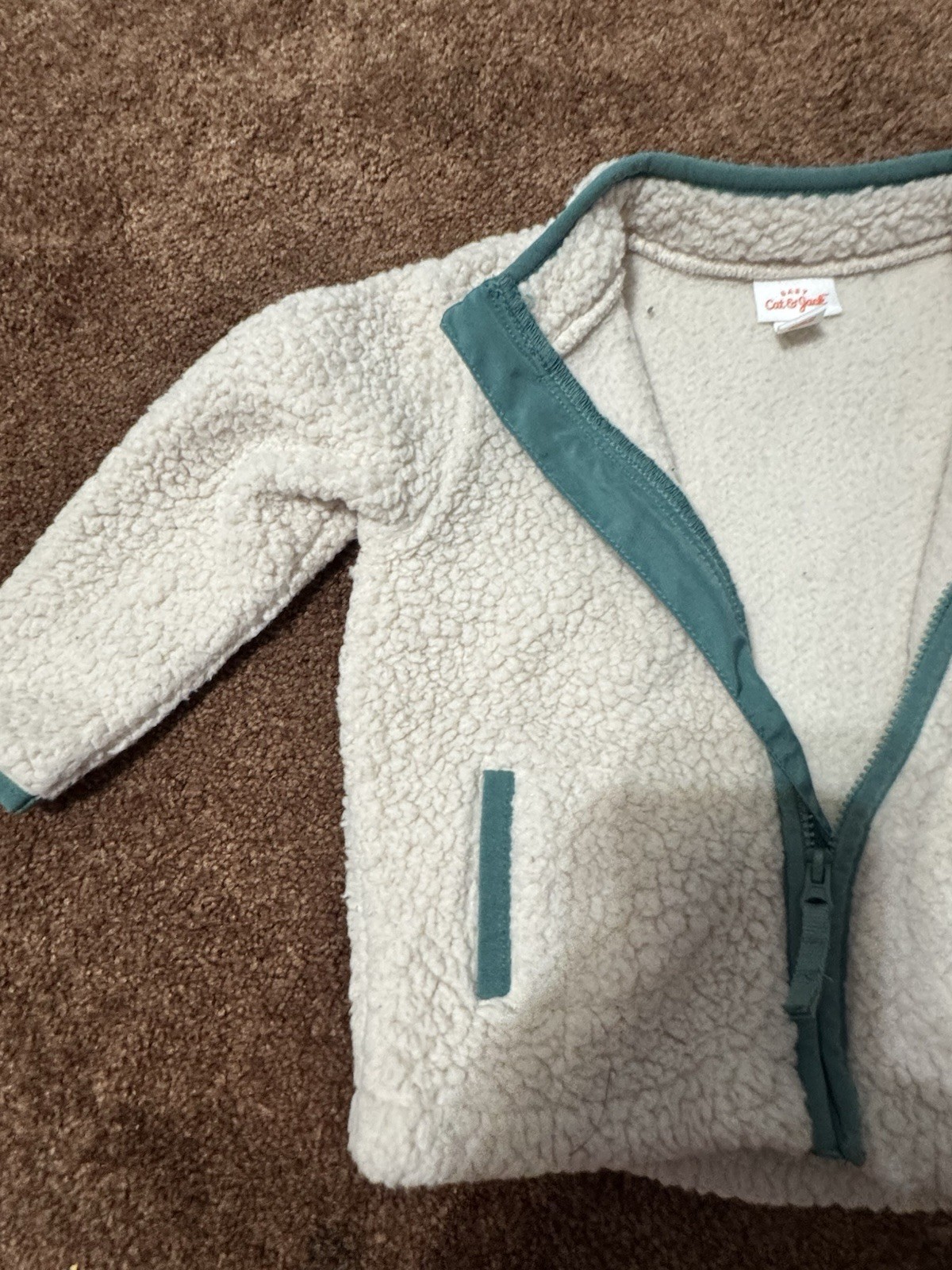 как выглядит Cat Jack Unisex Kids Sherpa Fleece Full Zip Jacket w/ Pockets 12 mBeige/Green фото