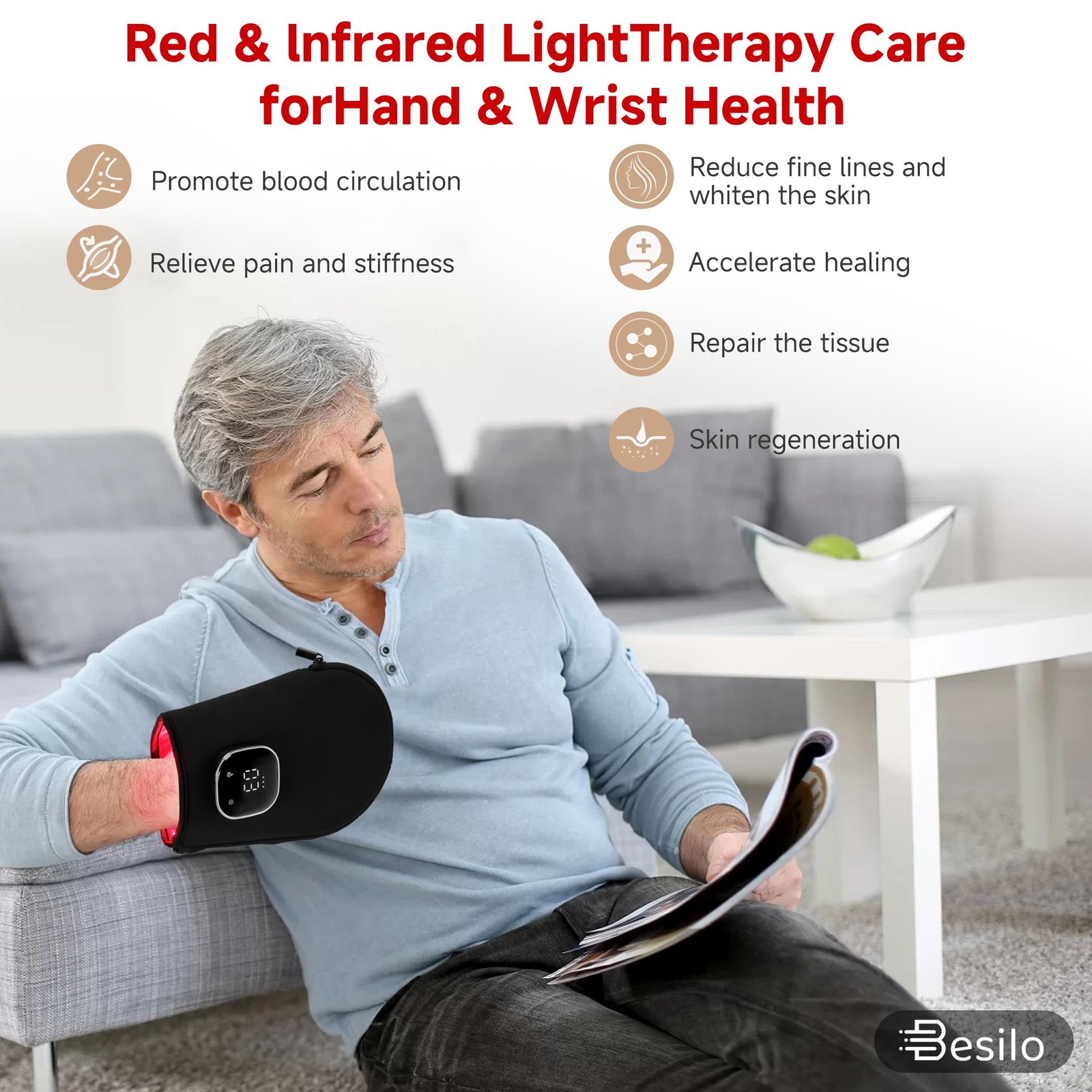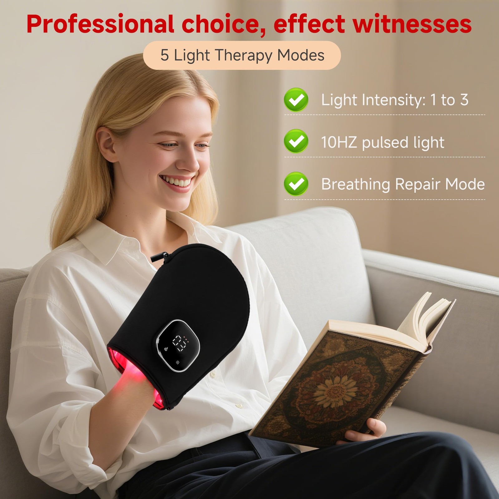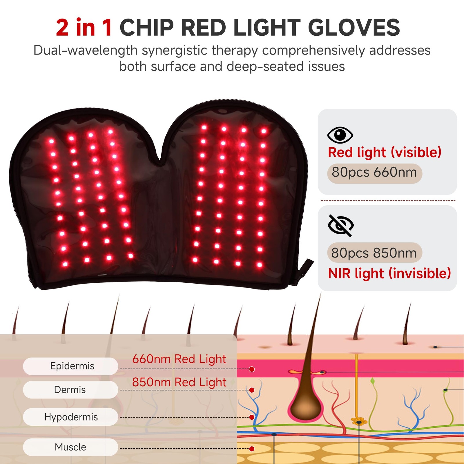 Rechargeable Red Infrared Light Therapy Gloves - 660nm 850nm Dual Wavelen...