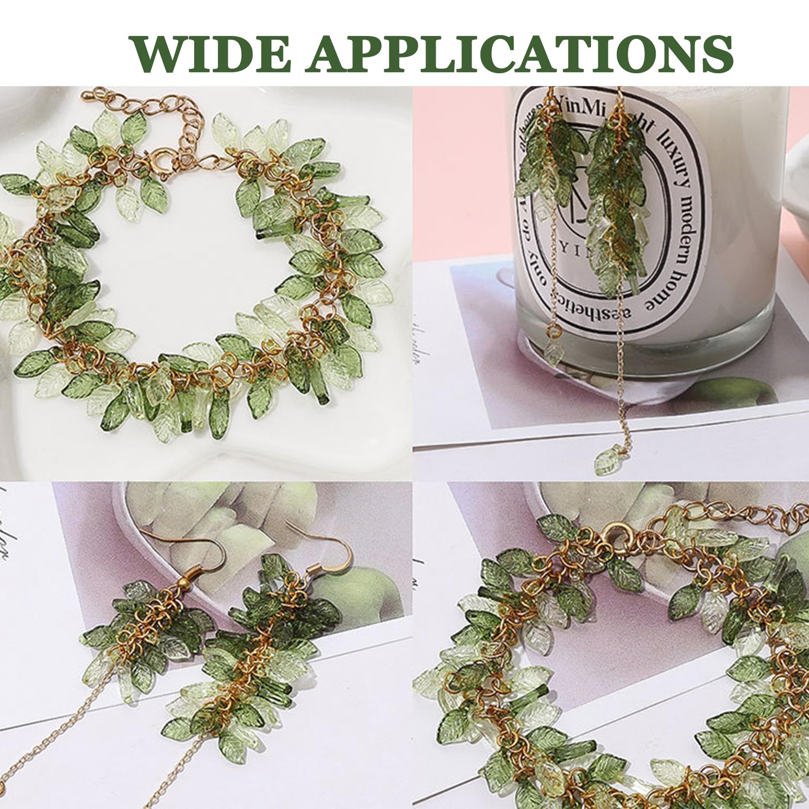 Assorted Green Leaf Beads for Jewelry Making 120PCS Acrylic Craft Charms Bu...