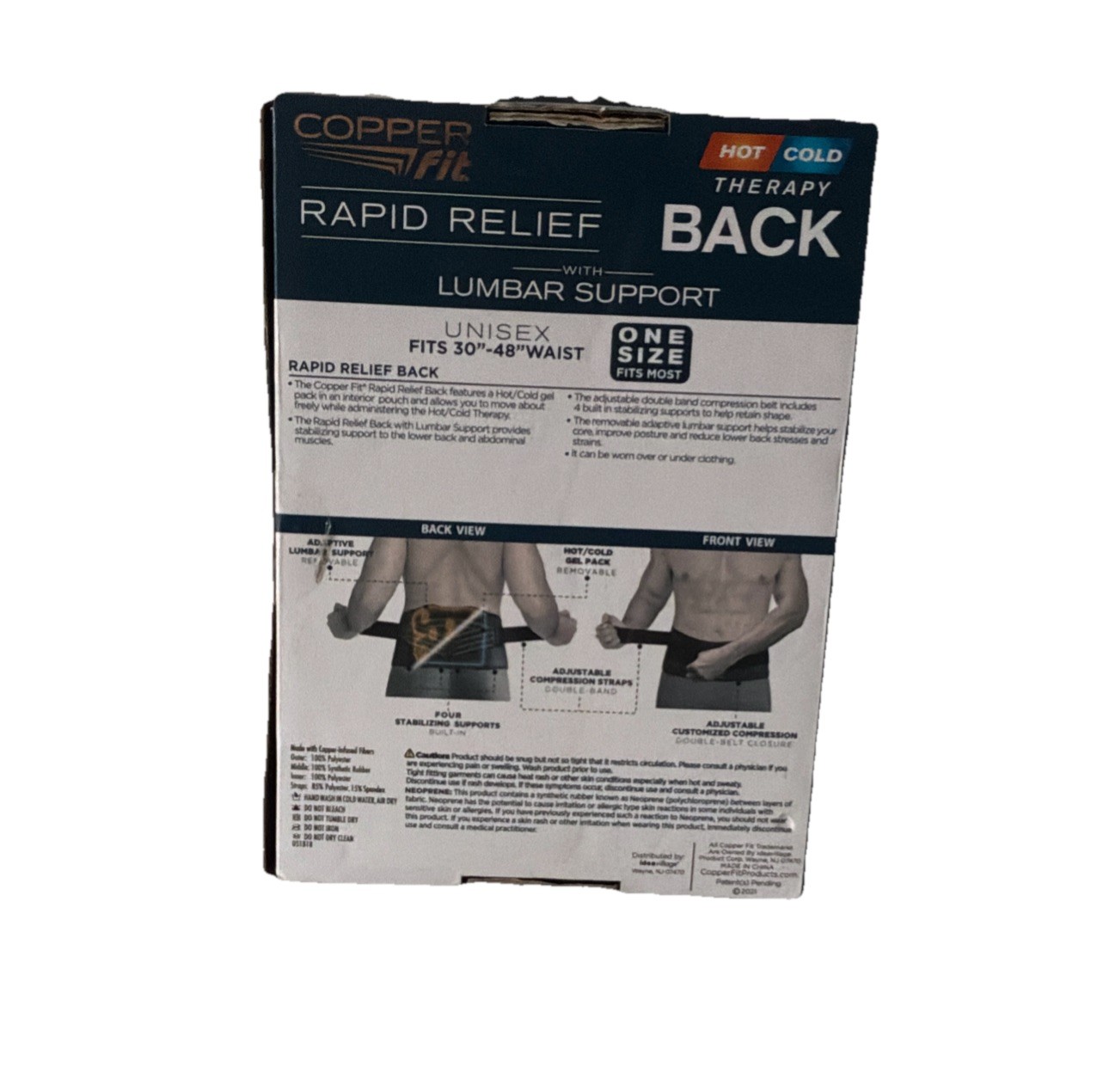Copper Fit Rapid Relief Back Support Hot/Cold Therapy Adjustable Copper Infused