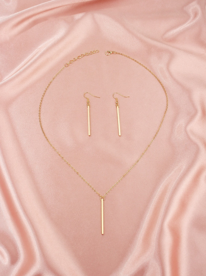 3 PCS Rectangle Women Jewelry Set Earrings Necklace Minimalist Gift For Her USA